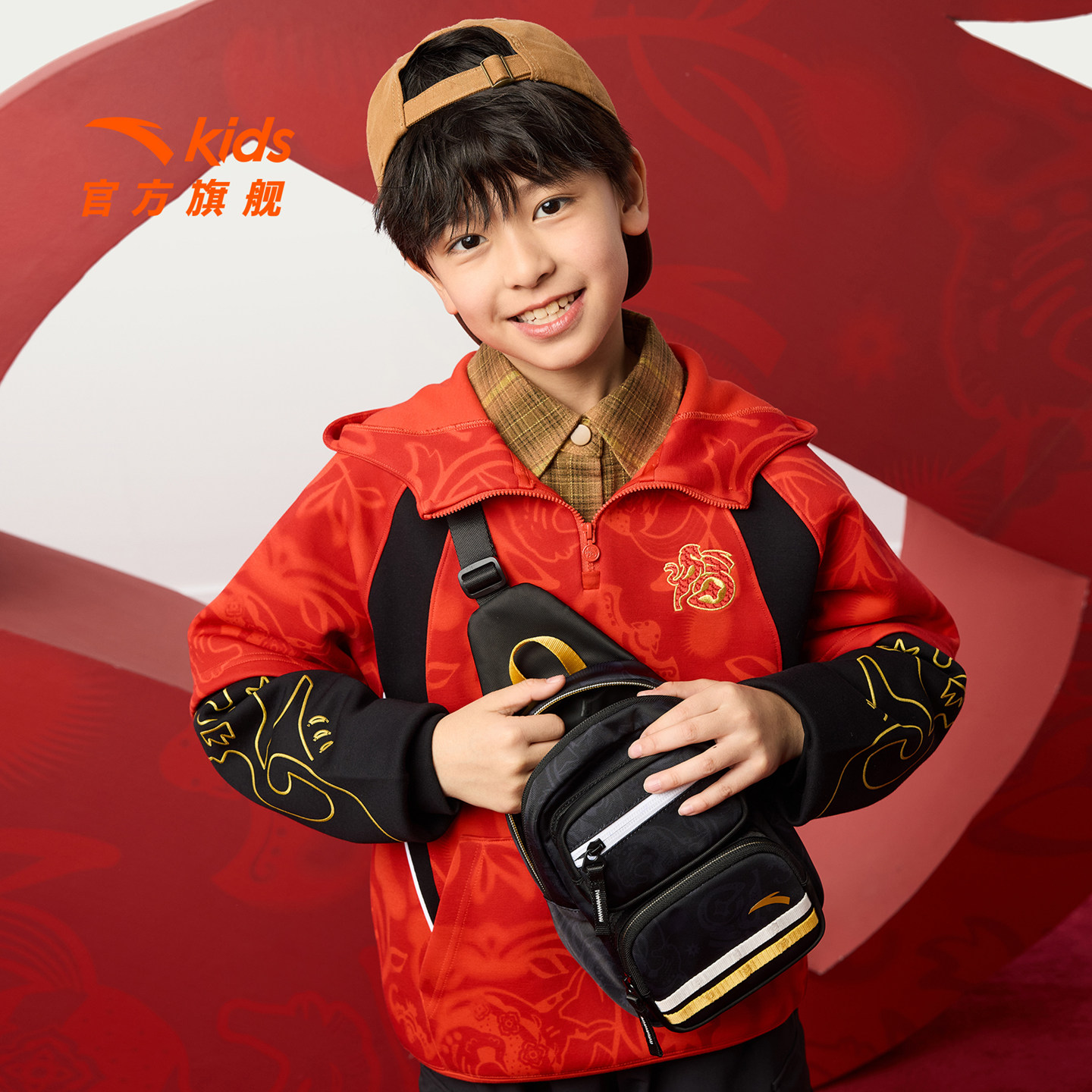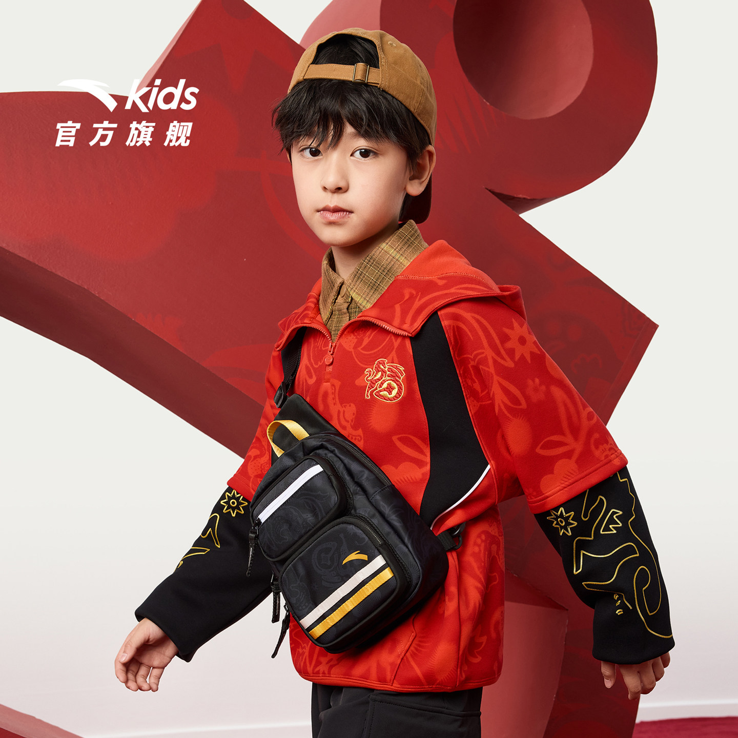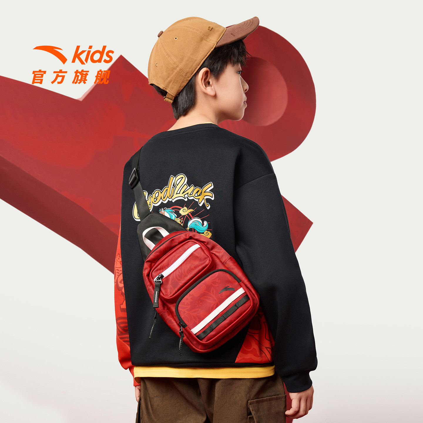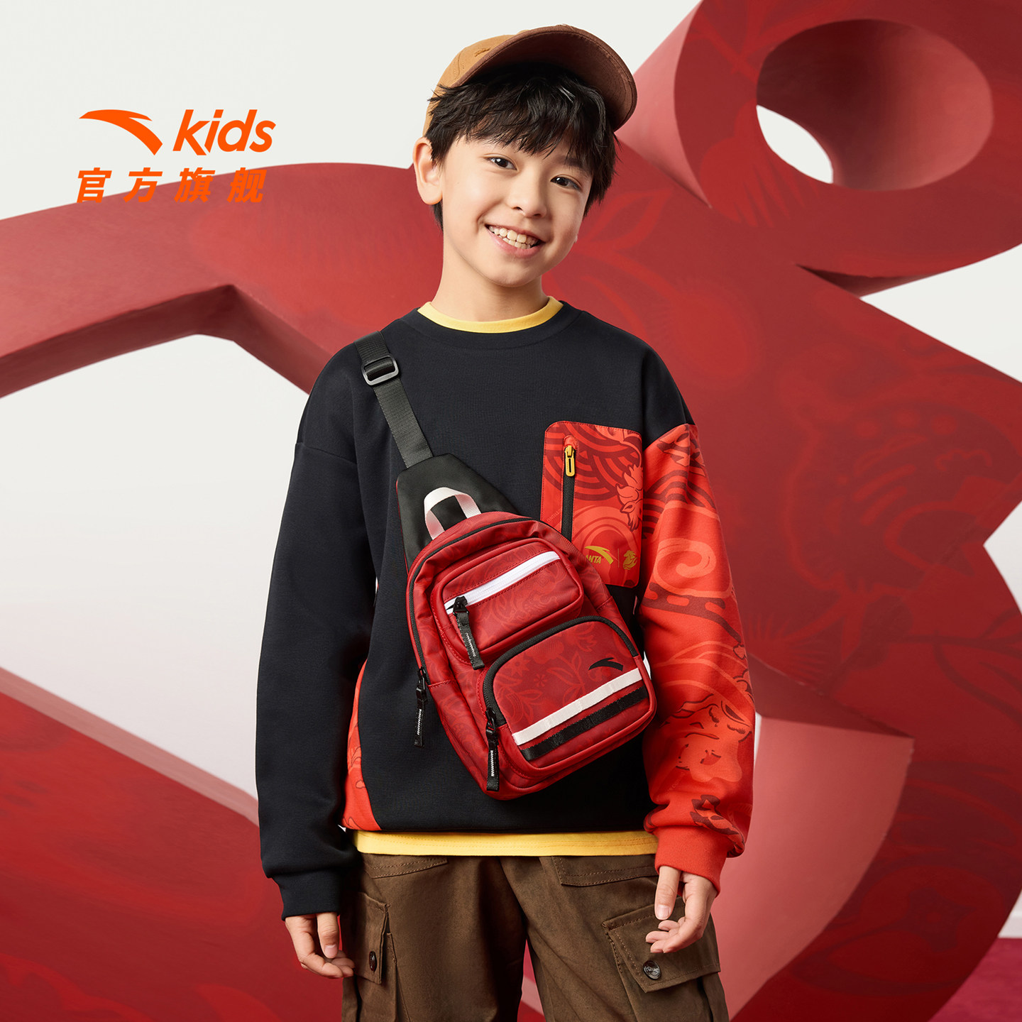 安踏儿童男大童胸包2026年新款大容量单间斜挎包包休闲单肩防水包