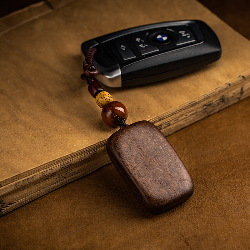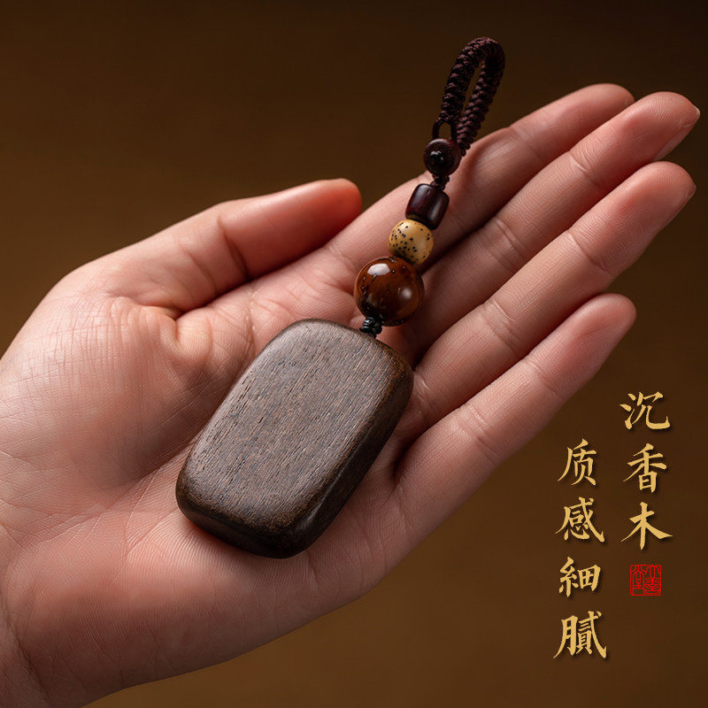 【店长设计】大善堂复古沉香木平安无事牌钥匙扣男汽车挂件女礼品