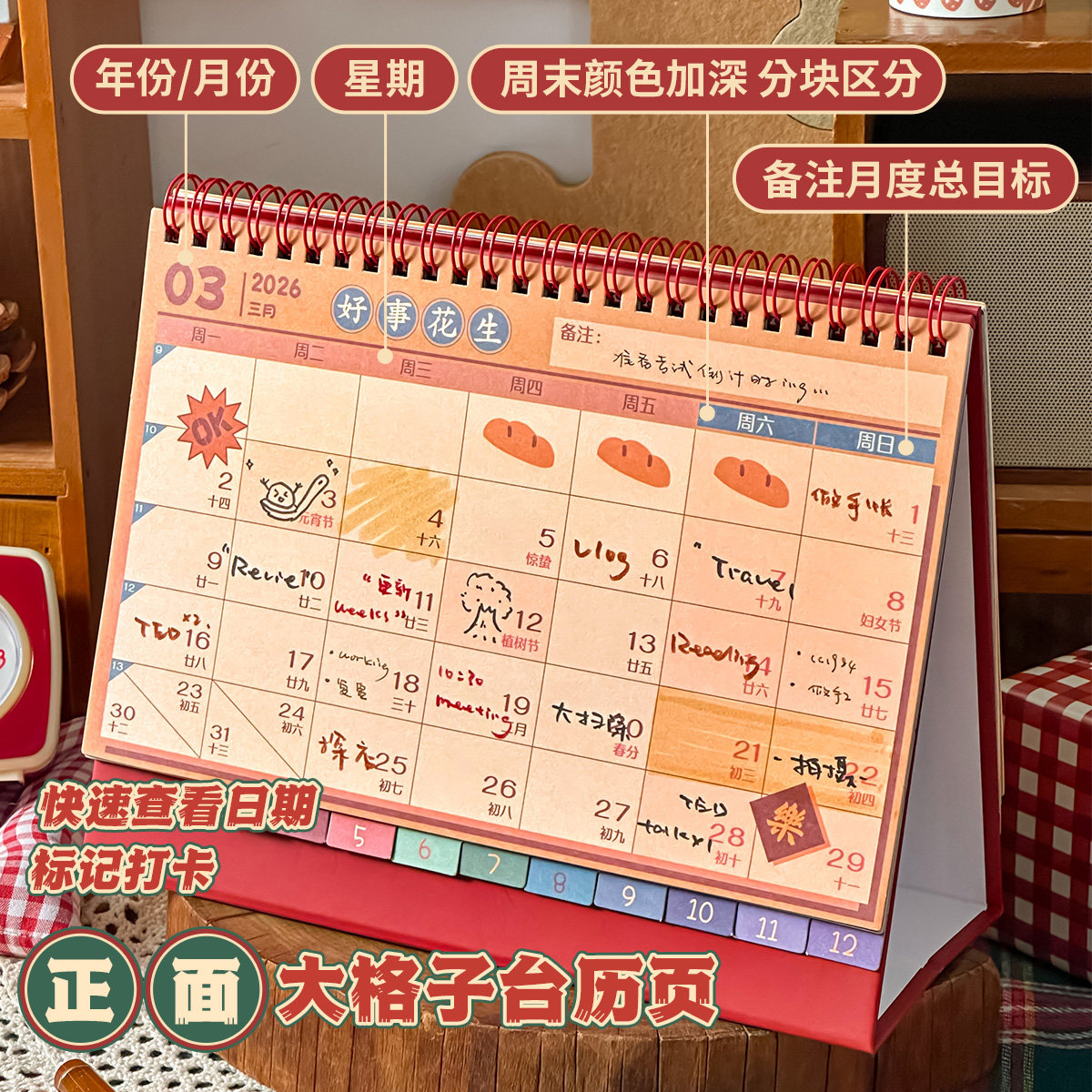 三年二班 2026宠物好友吸引日历高颜值ins风简约办公室桌面摆件打卡计划本倒计时日程备忘录月历新款创意台历