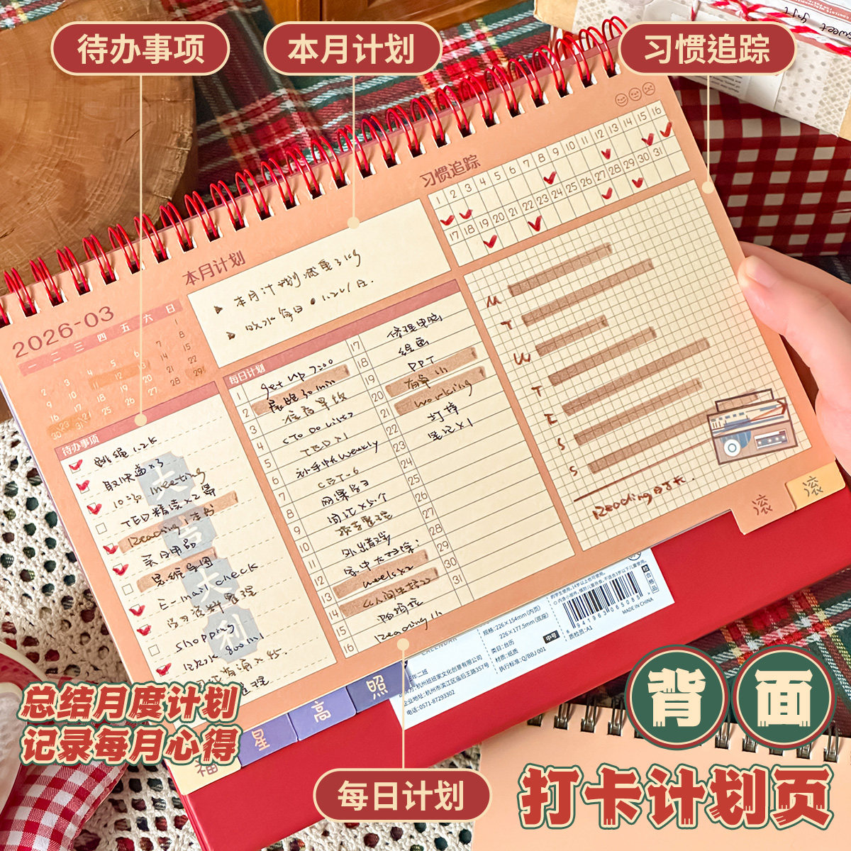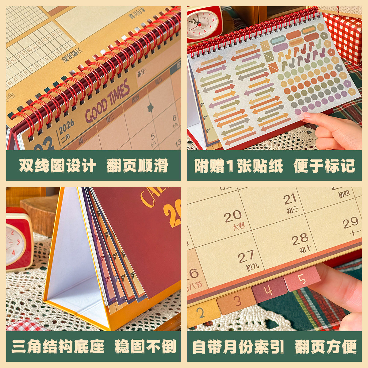 三年二班 港风复古台历2026年新款日历高颜值桌面摆件考研学习自律打卡计划本记事本2025月历办公室桌面台历