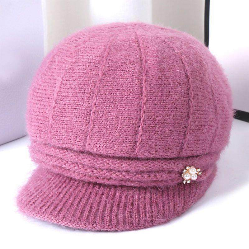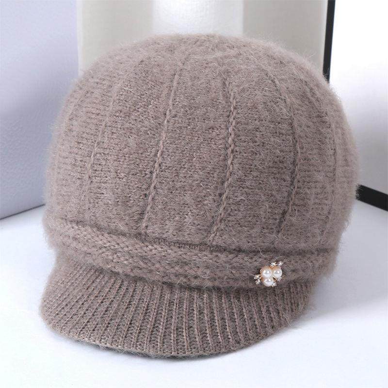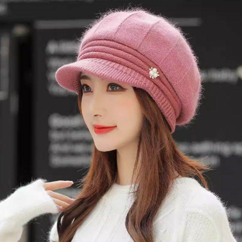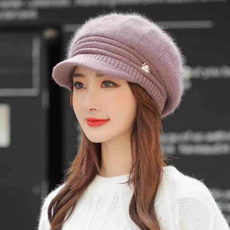 冬天加绒加厚护耳保暖帽帽子女秋鸭舌贝雷帽针织帽兔毛帽毛线帽女