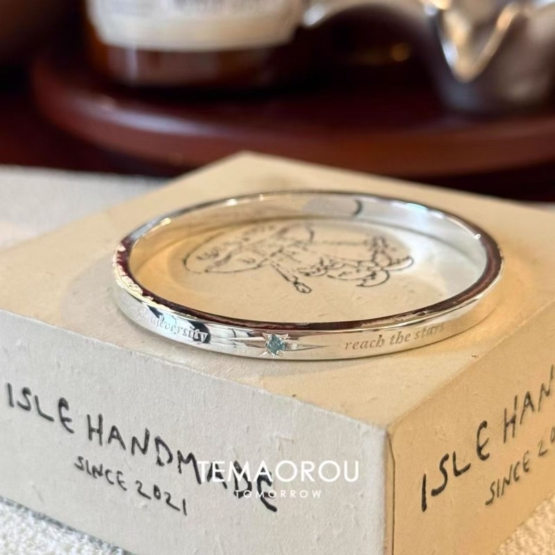 蓝钻八芒星雕刻英文字母手镯2025夏季新款手环小众设计高级感手饰