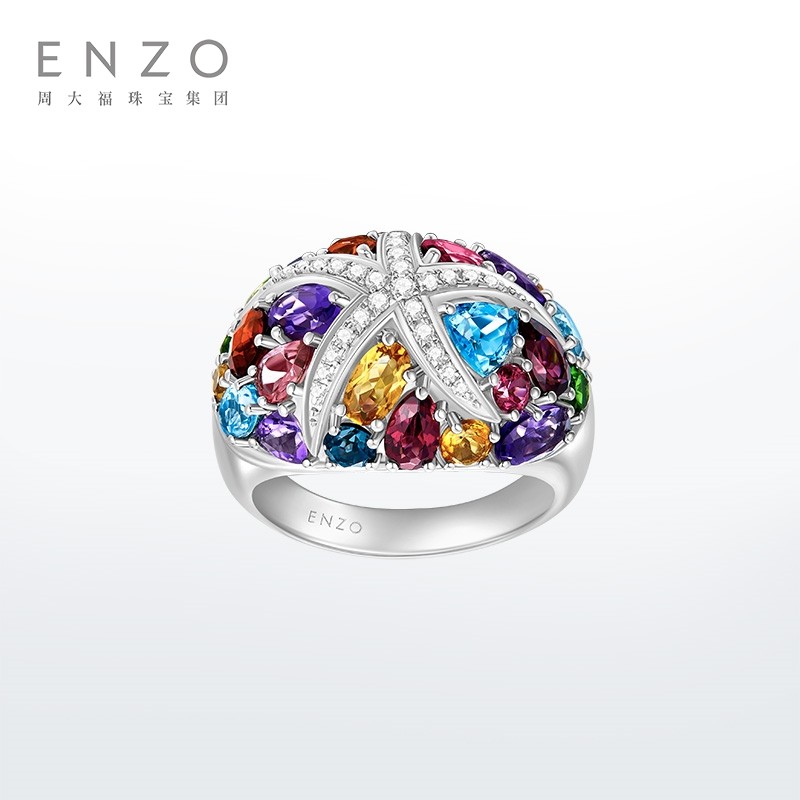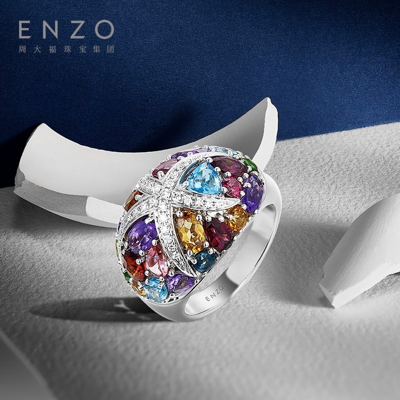 ENZO「海洋系列」中版 18K金多彩宝石钻石戒指女EZV6595新年礼物