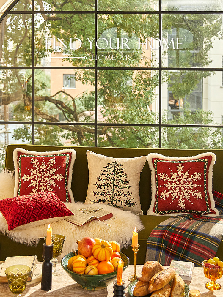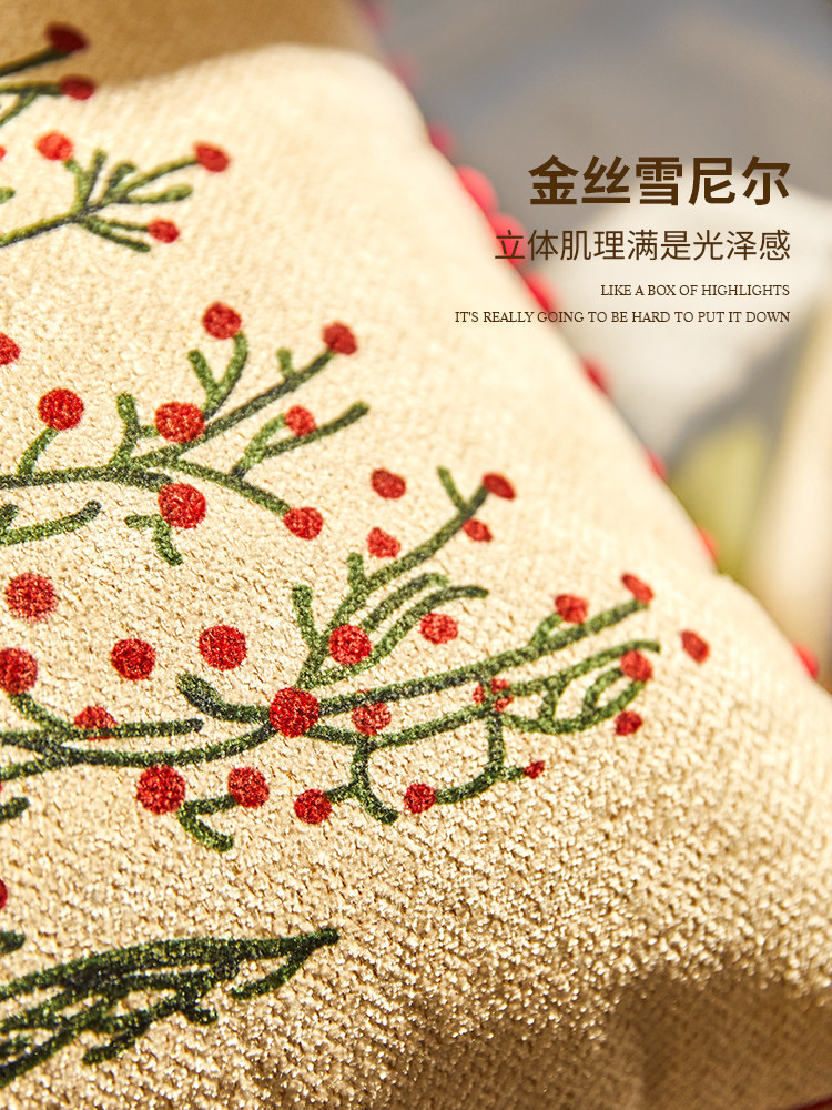 蜡笔派花环抱枕轻奢复古客厅沙发睡觉靠垫节日红色喜庆卧室定制