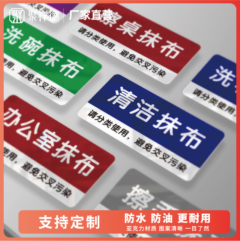 厨房工具物品分类标识全套洗碗抹布毛巾拖把指示贴亚克力消毒清洗手套标志医院学校餐厅食堂后厨4D管理标识牌