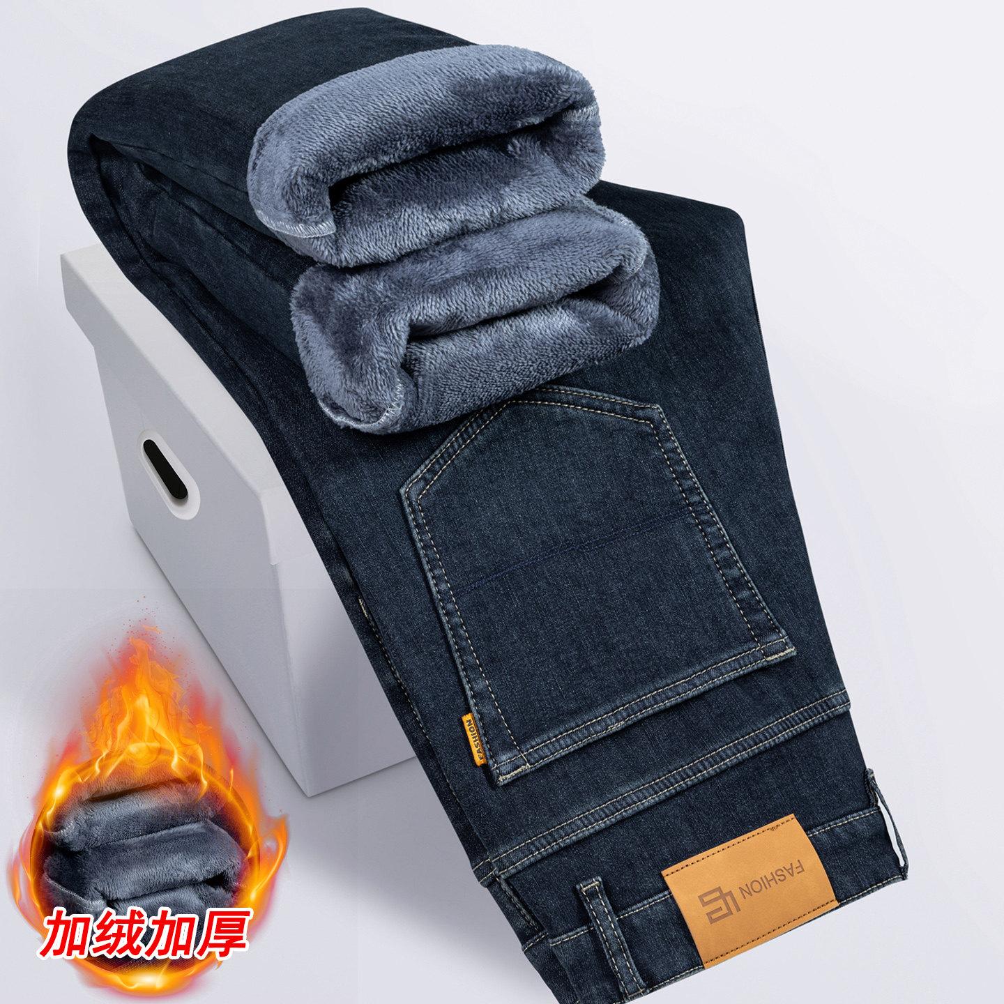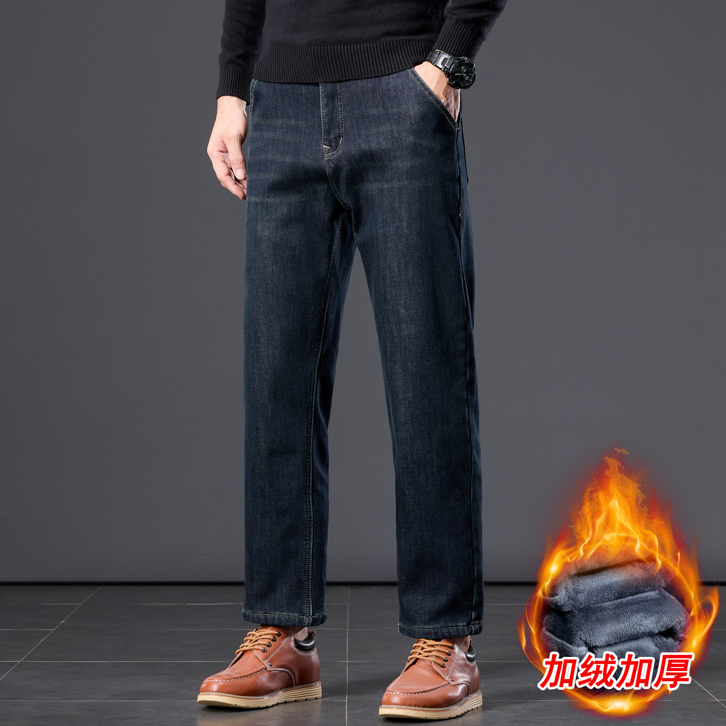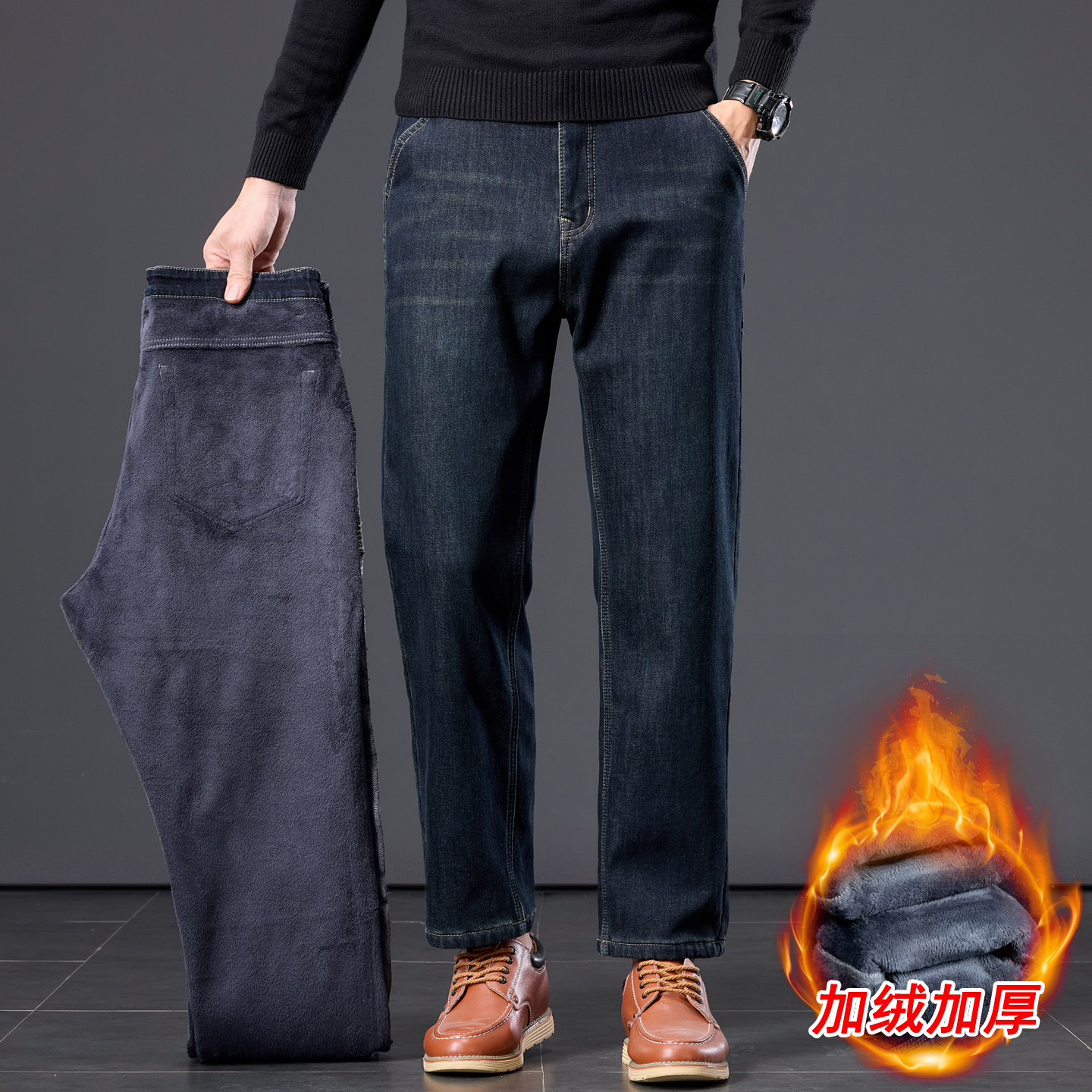 罗蒙冬季牛仔裤男士修身直筒宽松男裤2025新款休闲加绒长裤子男款