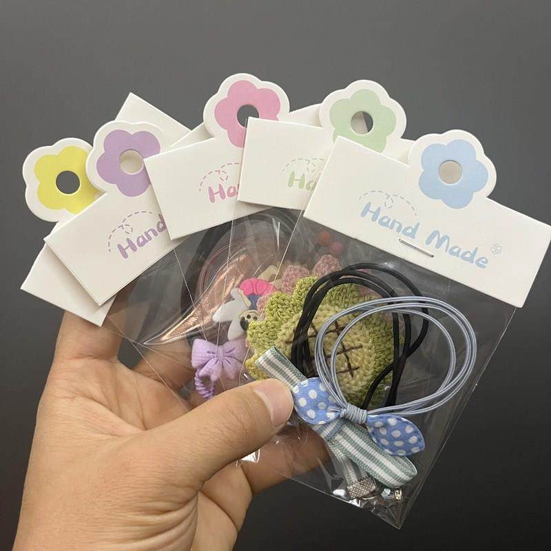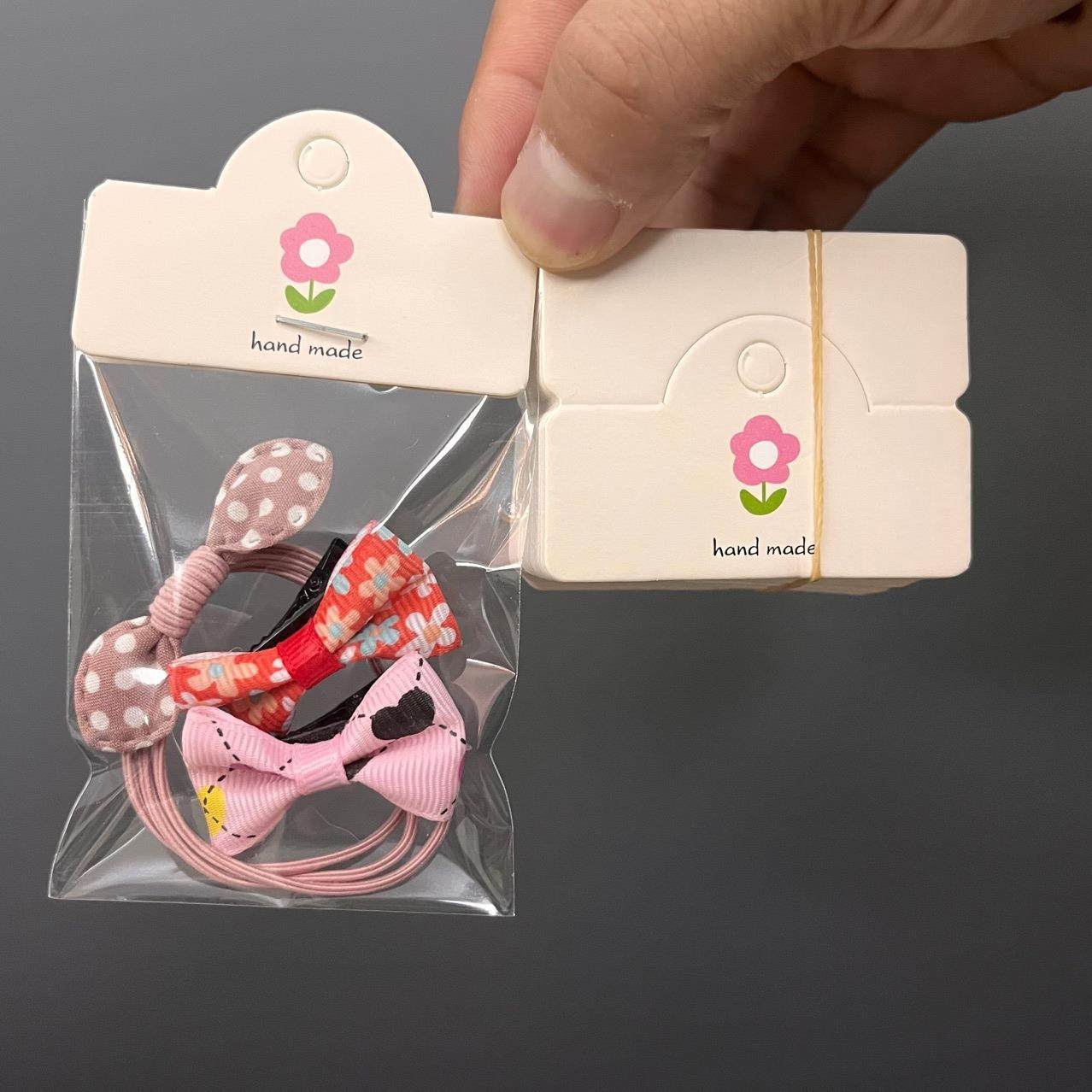 百张6.3×3.8直播间发饰品包装领结对折卡纸小花卡片卡通发夹卡头