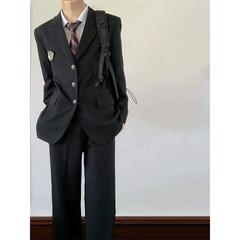 日系学院风dk制服西服套装宽松痞帅春秋季jk学生班服徽章西服外套