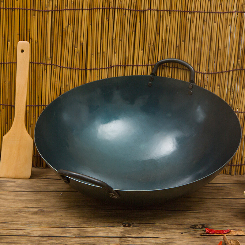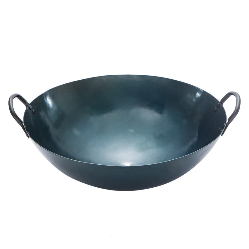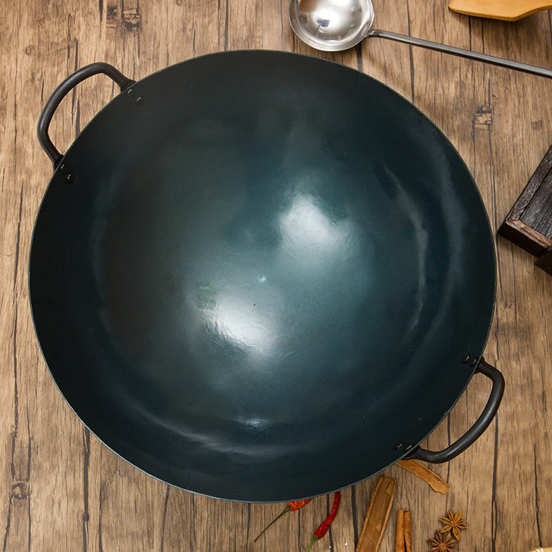 商用加厚双耳大铁锅老式熟铁炒锅无涂层不粘锅柴火燃气煤气灶专用
