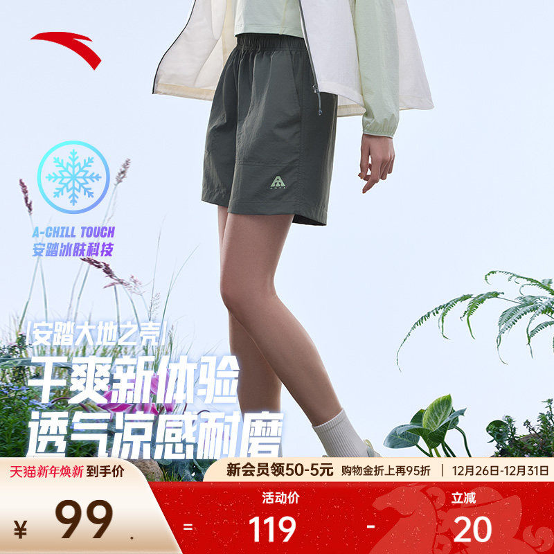 安踏户外冰丝短裤丨大地之壳短袖休闲裤女款夏季新款徒步运动裤子