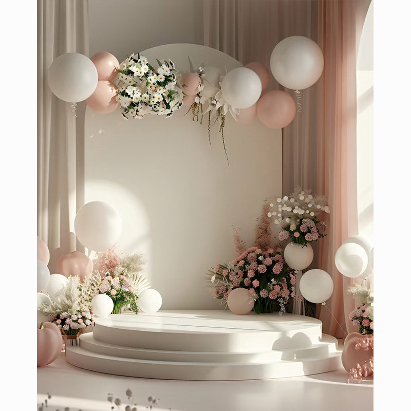 粉色节日直播拍情人节简约风气球直播背景布3d立体壁纸画直播间场景布置高级感网红拍照区可移动氛围感新款