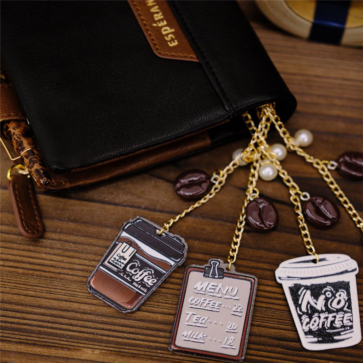 咖啡周边亚克力链条书签手帐挂件手工挂件装饰书签INS欧美活页