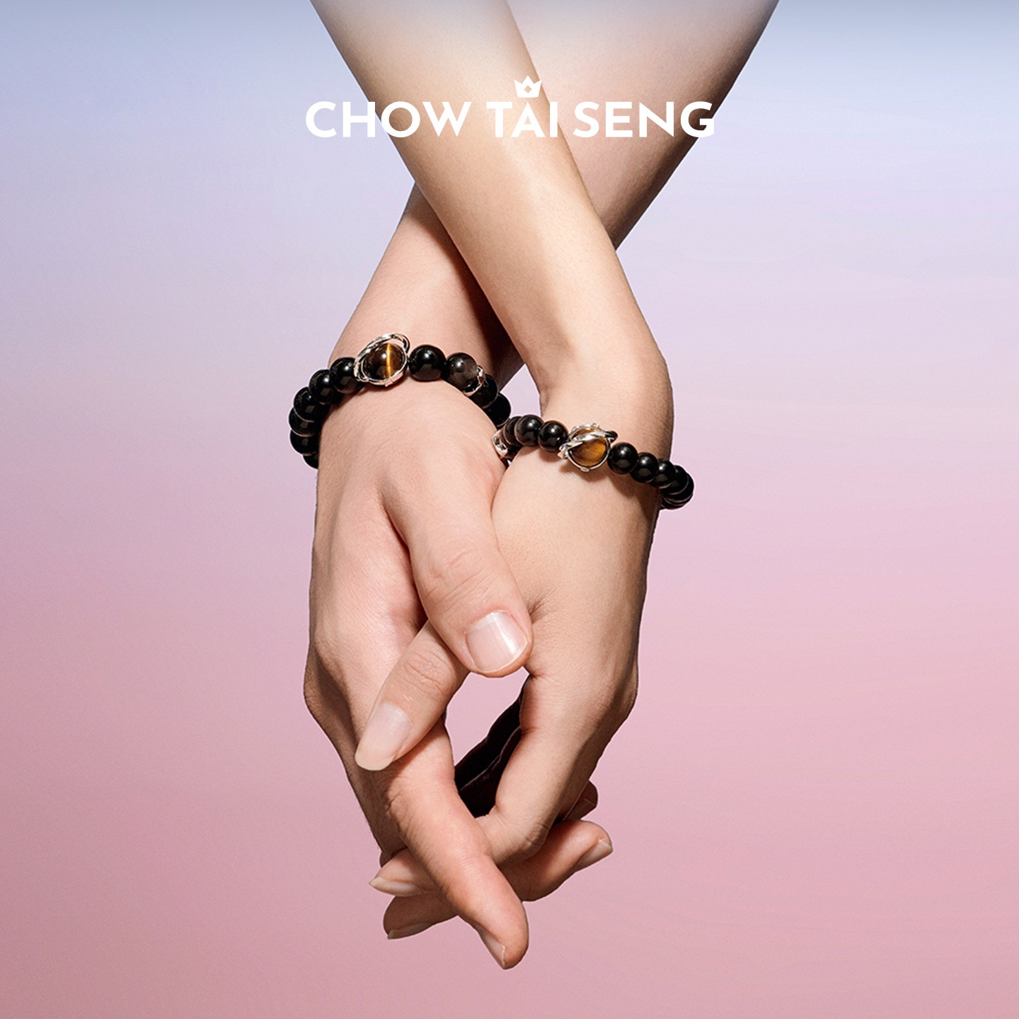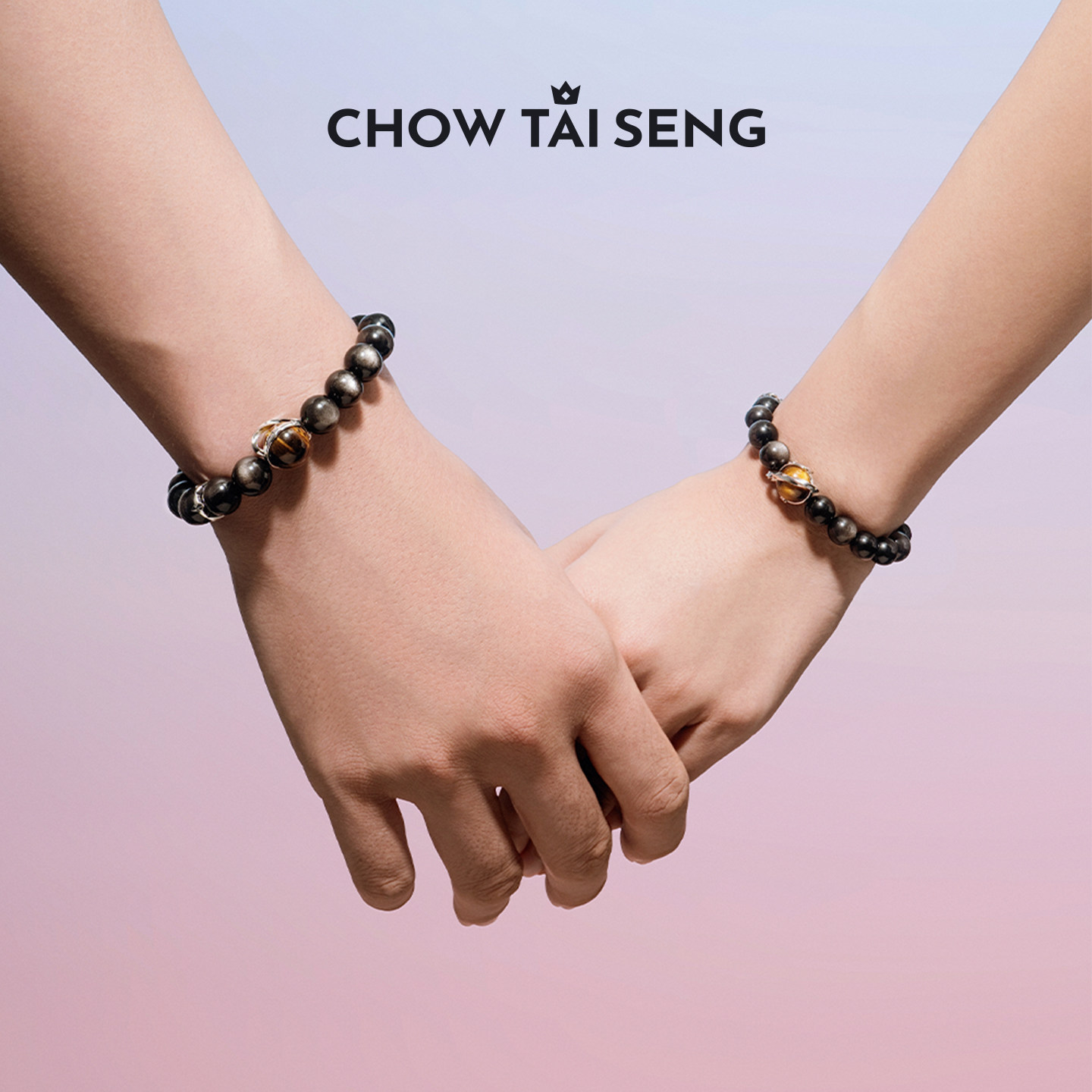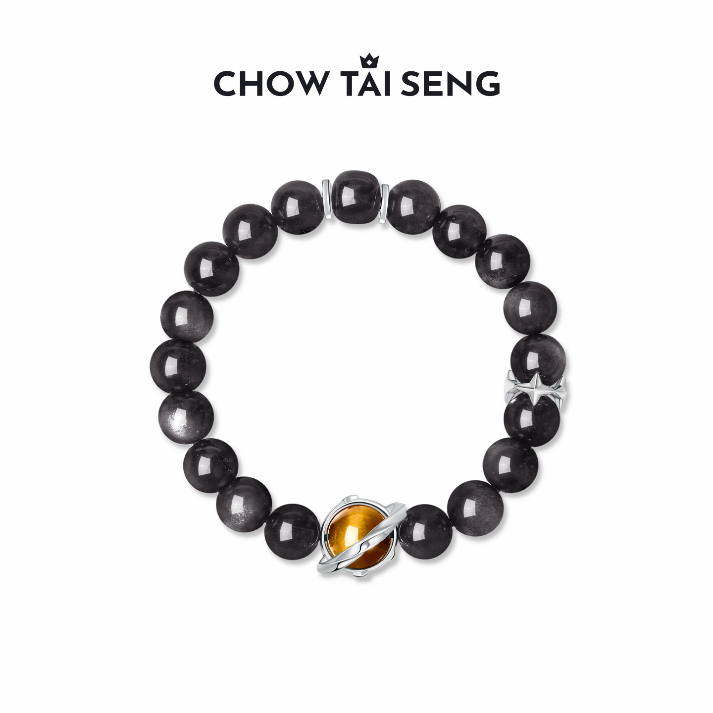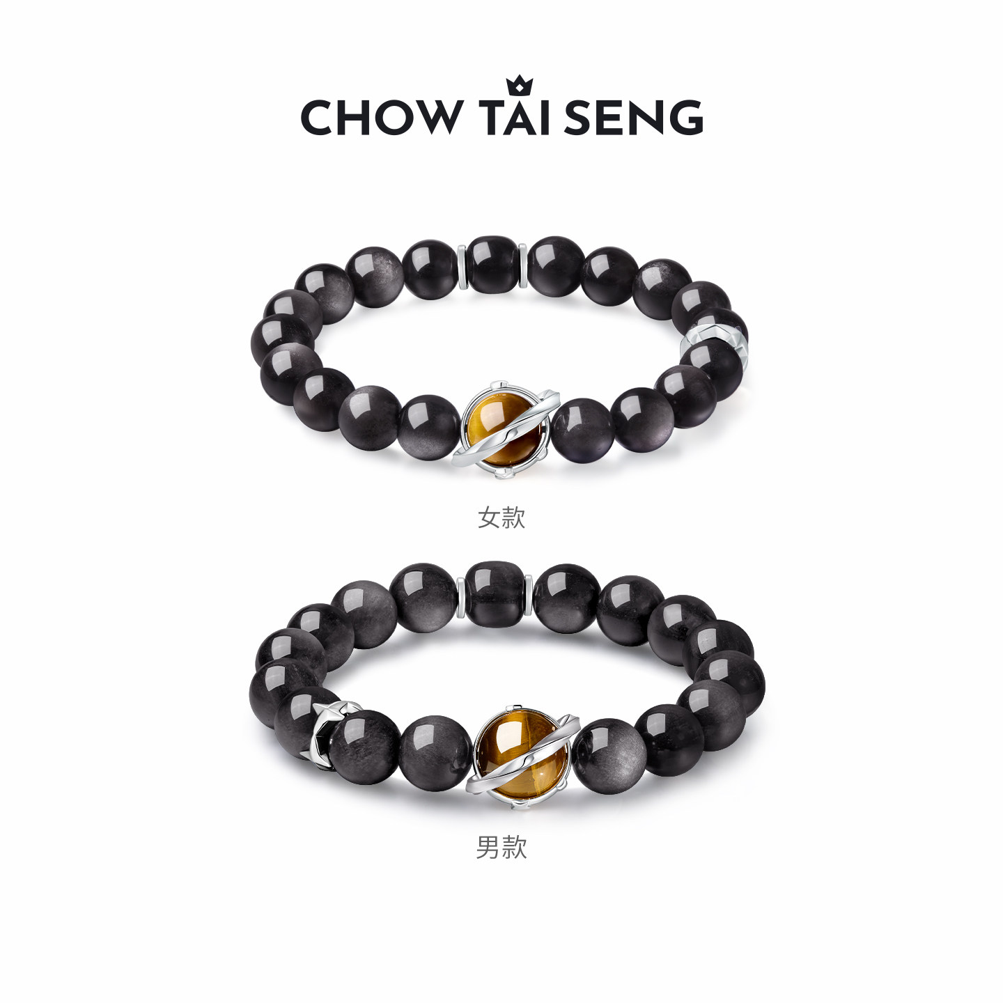 周大生星空之恋黑曜石男士手链情侣手串一对手链生日礼物送男友
