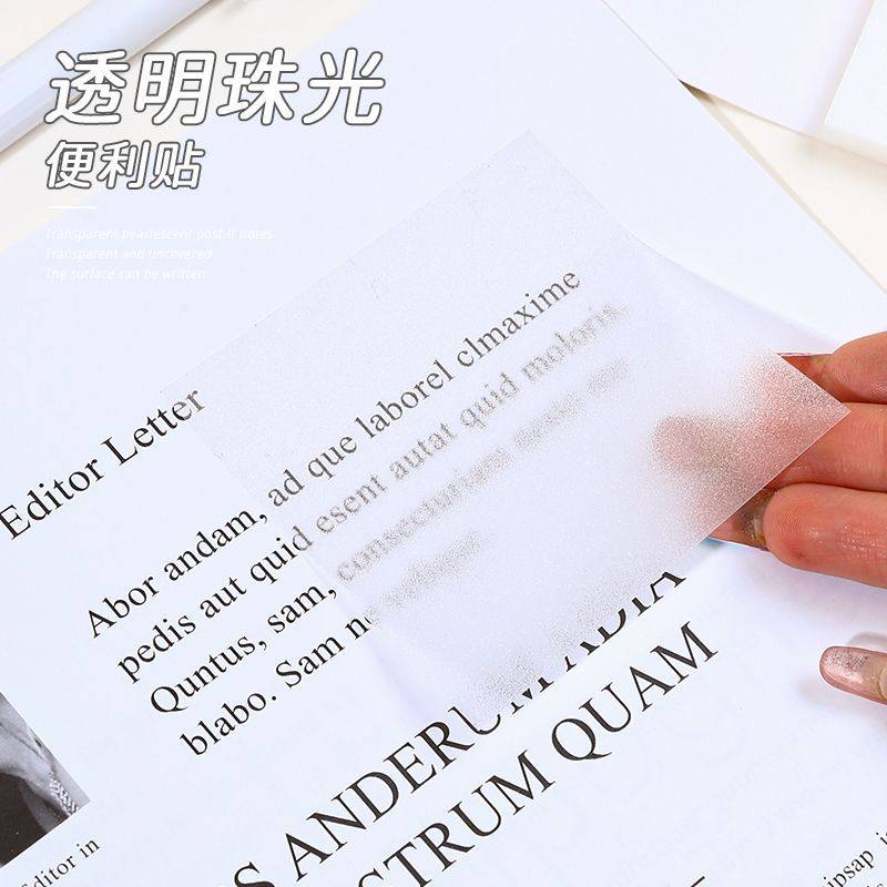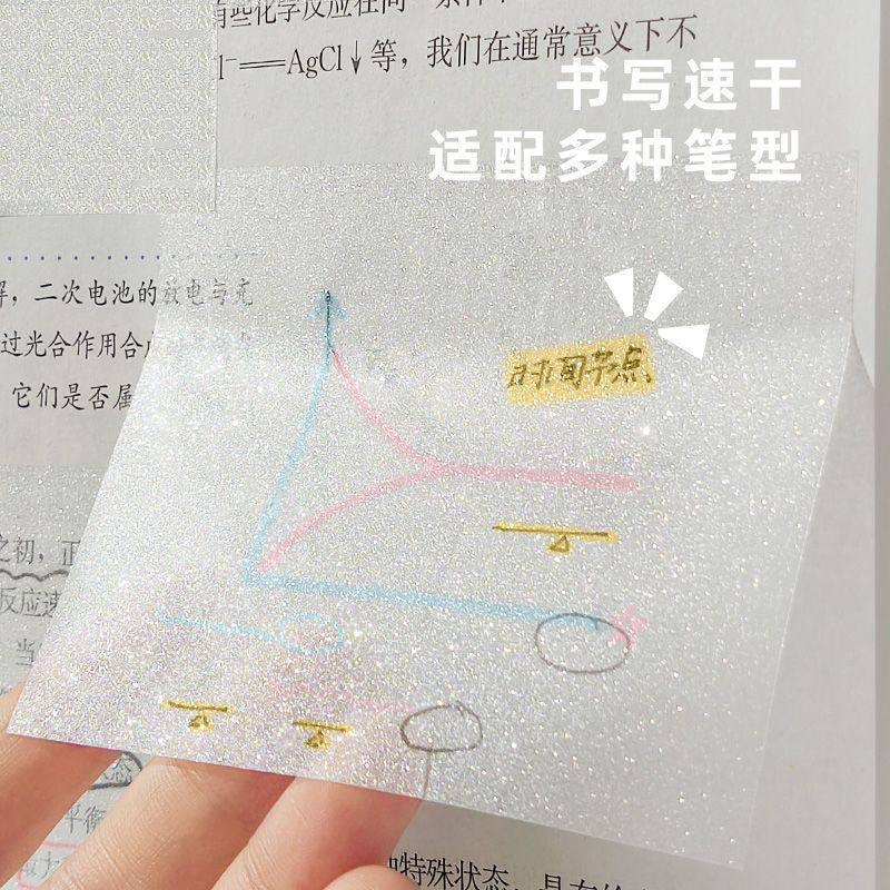 透明磨砂便利贴爆闪高颜值珠光便签纸中性笔可书写速干不脏手学习