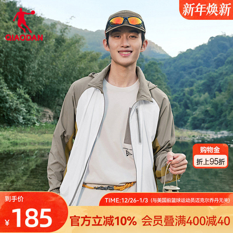 乔丹UPF100+冰感皮肤衣男生秋季防晒宽松梭织可拆卸帽梭织