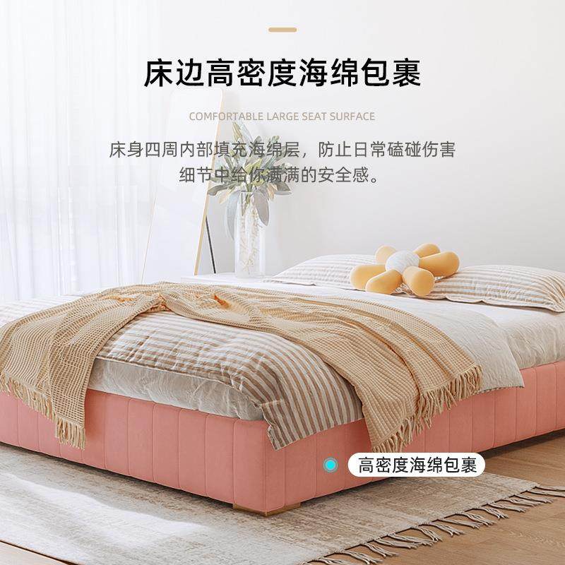 冬熊北欧轻奢无床头床现代简约卧室奶油风无靠背落地储物布艺床