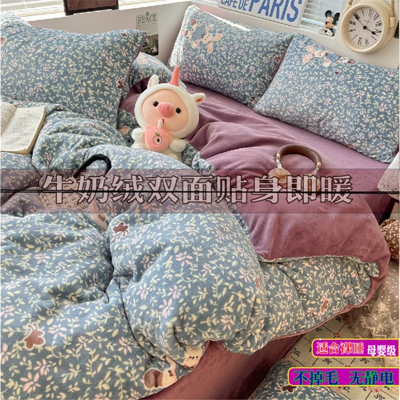 牛奶绒四件套冬季加厚珊瑚绒单被套双面绒加绒被罩床单三件套枕套