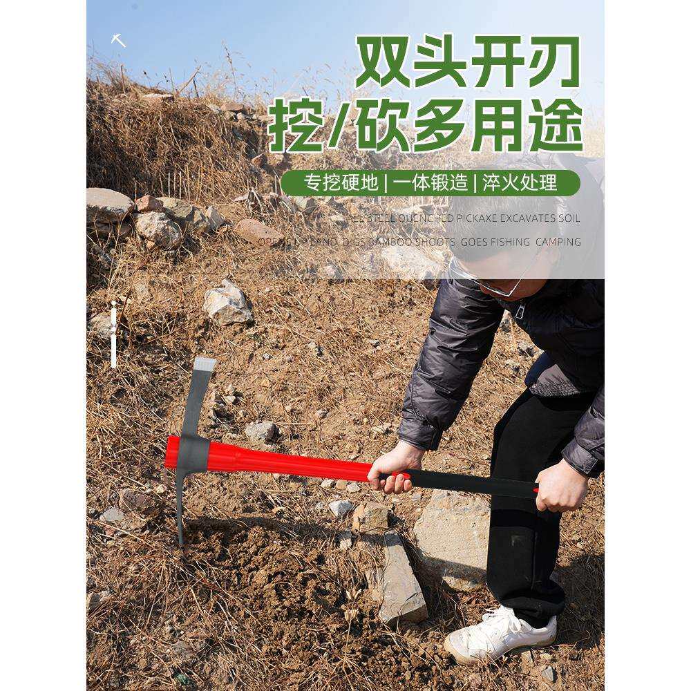 洋镐头锰钢一体款十字镐挖笋专用羊角锄头挖树根神器刨地稿铁搞斧