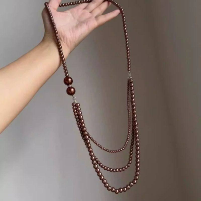 美拉德波西米亚叠戴毛衣项链女棕色复古穿搭choker锁骨链高级配饰