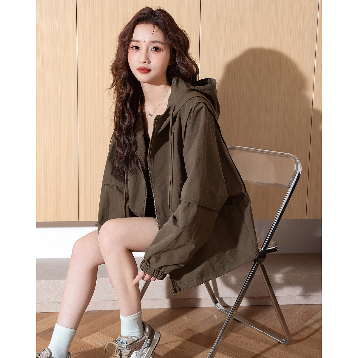 唐狮春秋季连帽短款外套女美式高街酷飒风高级感休闲外套女流行tu