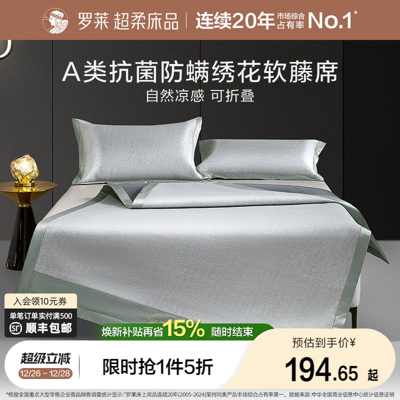 【断码清仓】罗莱家纺凉席夏季天然藤席双人床A类可折叠抗菌席子