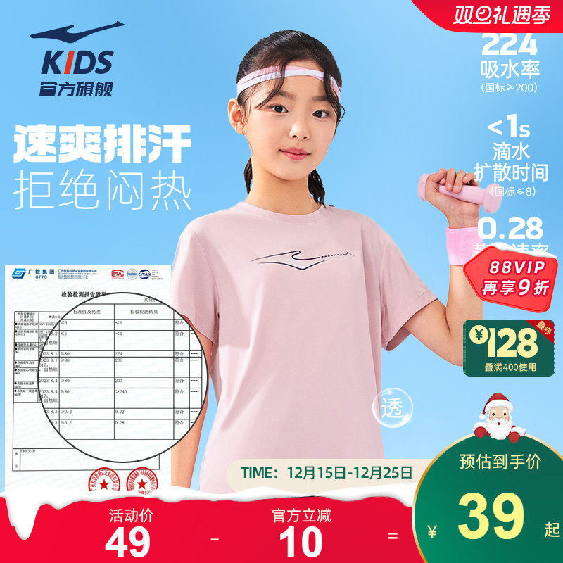 鸿星尔克童装女童冰爽短袖T恤儿童运动速干衣夏季轻薄透气上衣