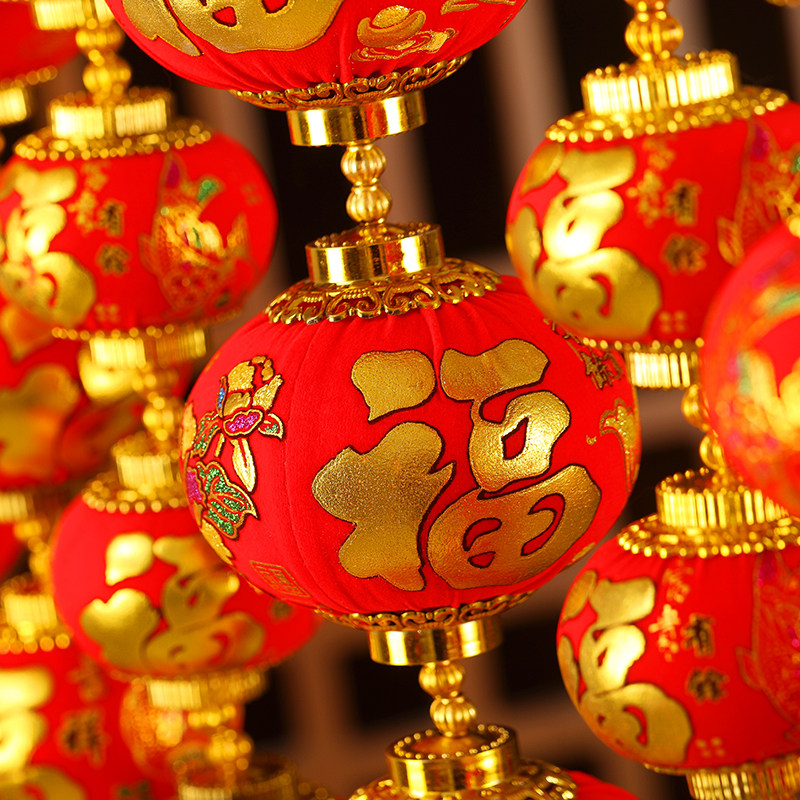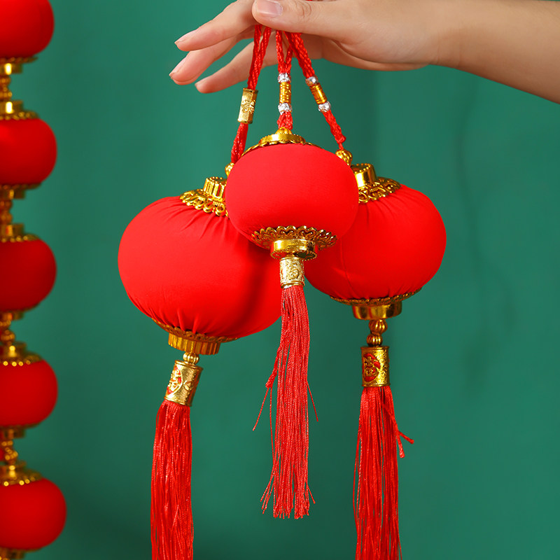 小灯笼串户外连串挂饰大红植绒灯笼节日喜庆装饰元旦场景布置灯笼