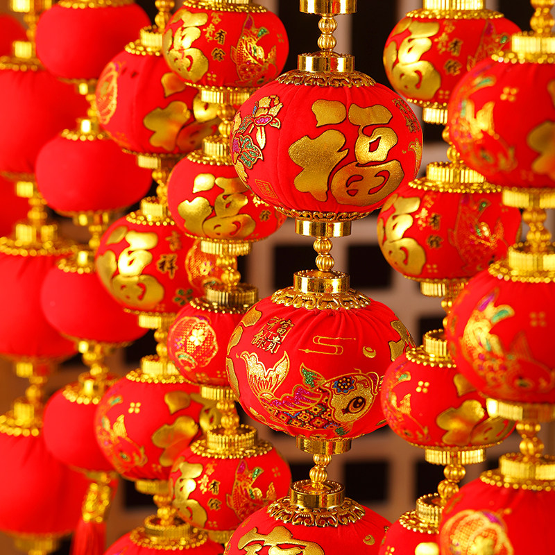 新年植绒小灯笼2026户外庭院子红宫灯春节过年装饰品年味场景布置