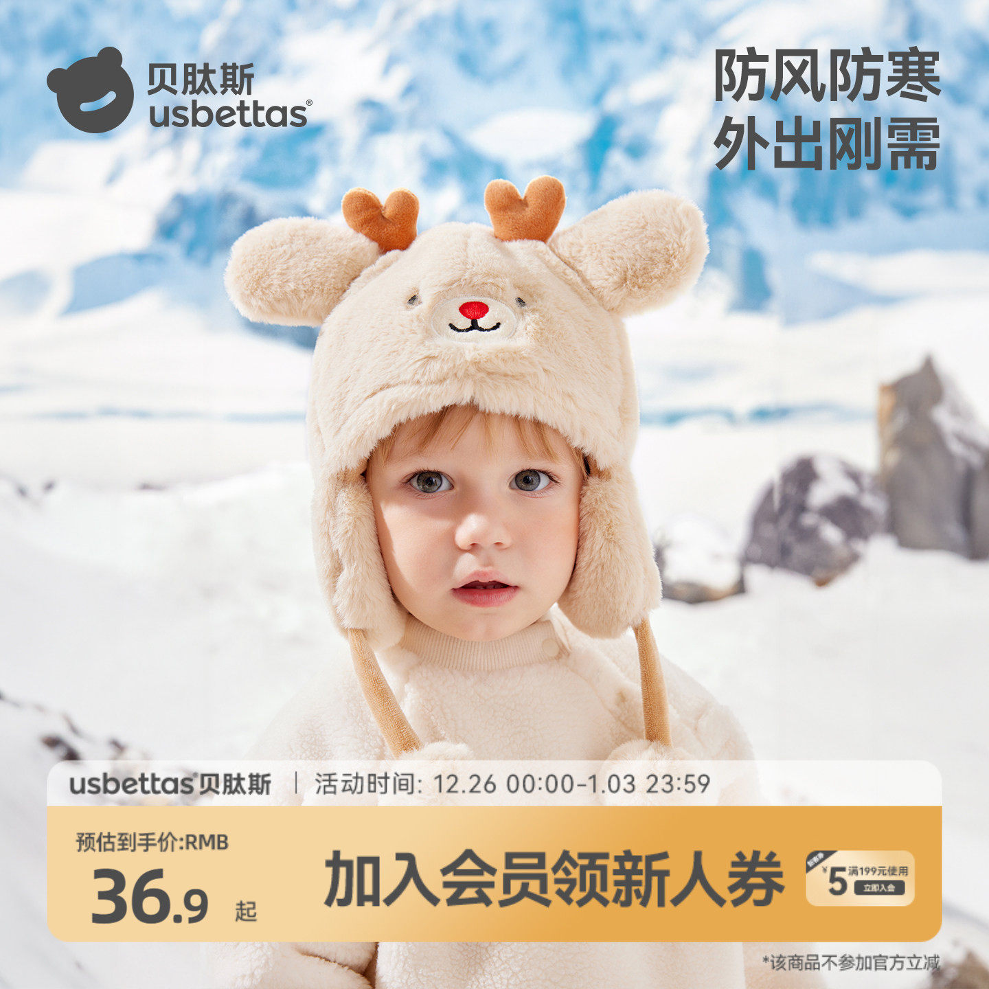 贝肽斯婴儿帽子冬季加绒加厚毛绒帽男女宝宝外出防风护耳保暖洋气
