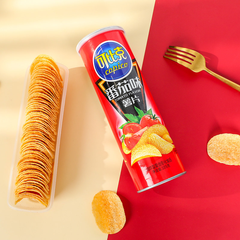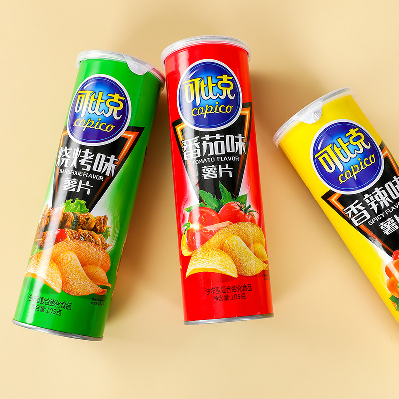 可比克罐装薯片原味番茄烧烤香辣青瓜味105g*4经典休闲膨化