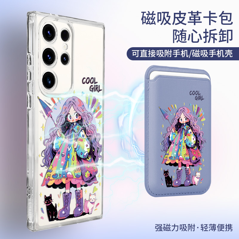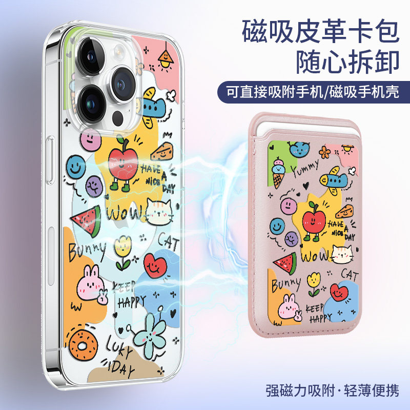 magSafe磁吸卡包适用苹果iphone15promax皮革可爱华为mate60皮质车卡套三星S24通用手机配件门禁卡防消磁卡通