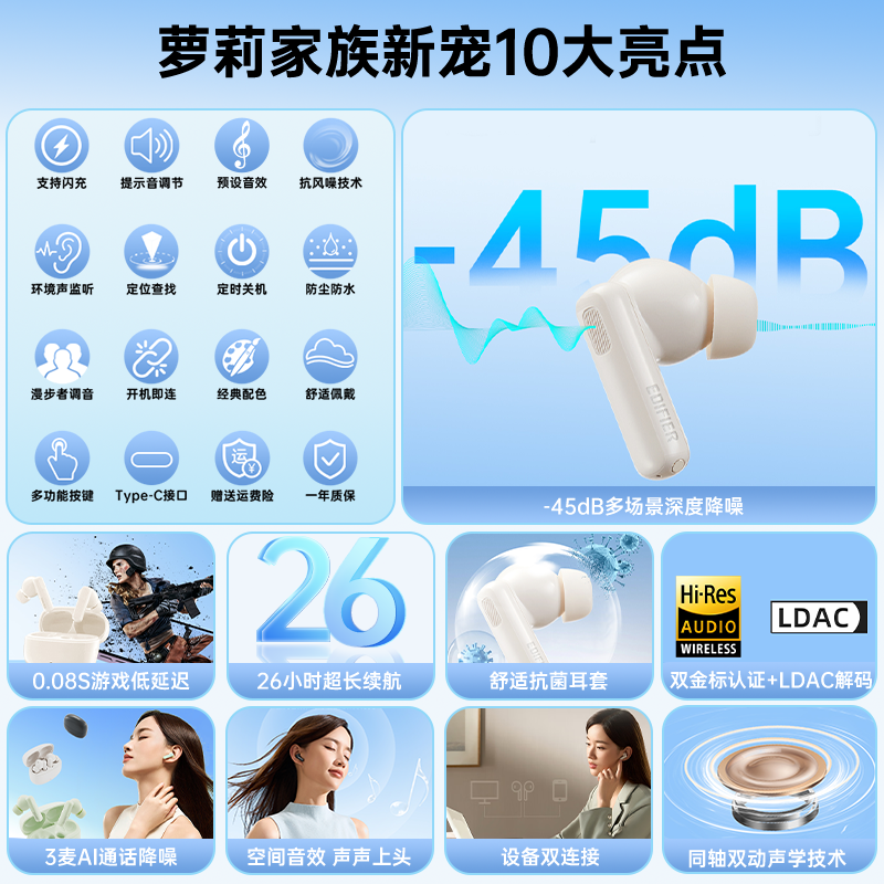 漫步者lollipro3蓝牙耳机无线主动降噪高音质跑步运动2024新款