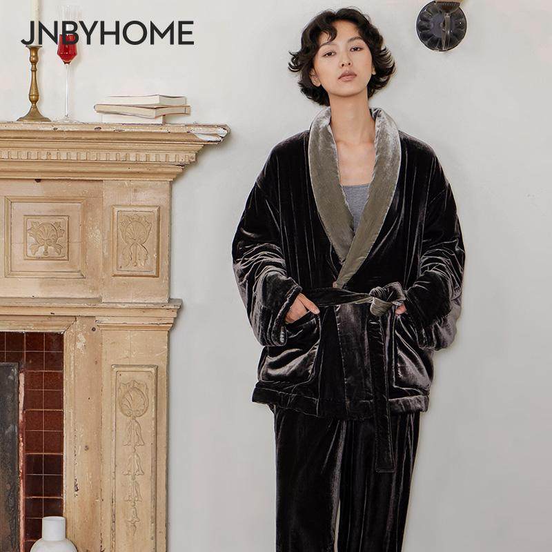JNBYHOME江南布衣秋冬睡衣加厚睡袍保暖翻领温暖柔软家居服女士