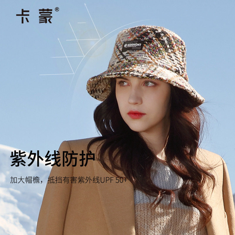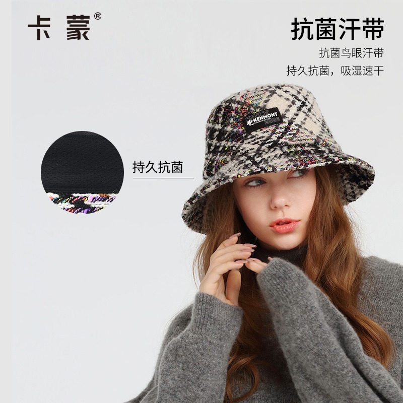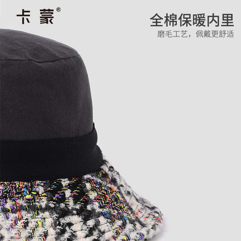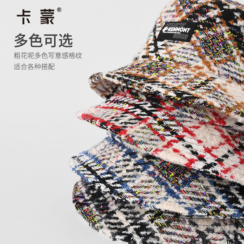 卡蒙小香风粗花呢保暖渔夫帽女士秋冬季毛呢格子盆帽高端品牌帽子