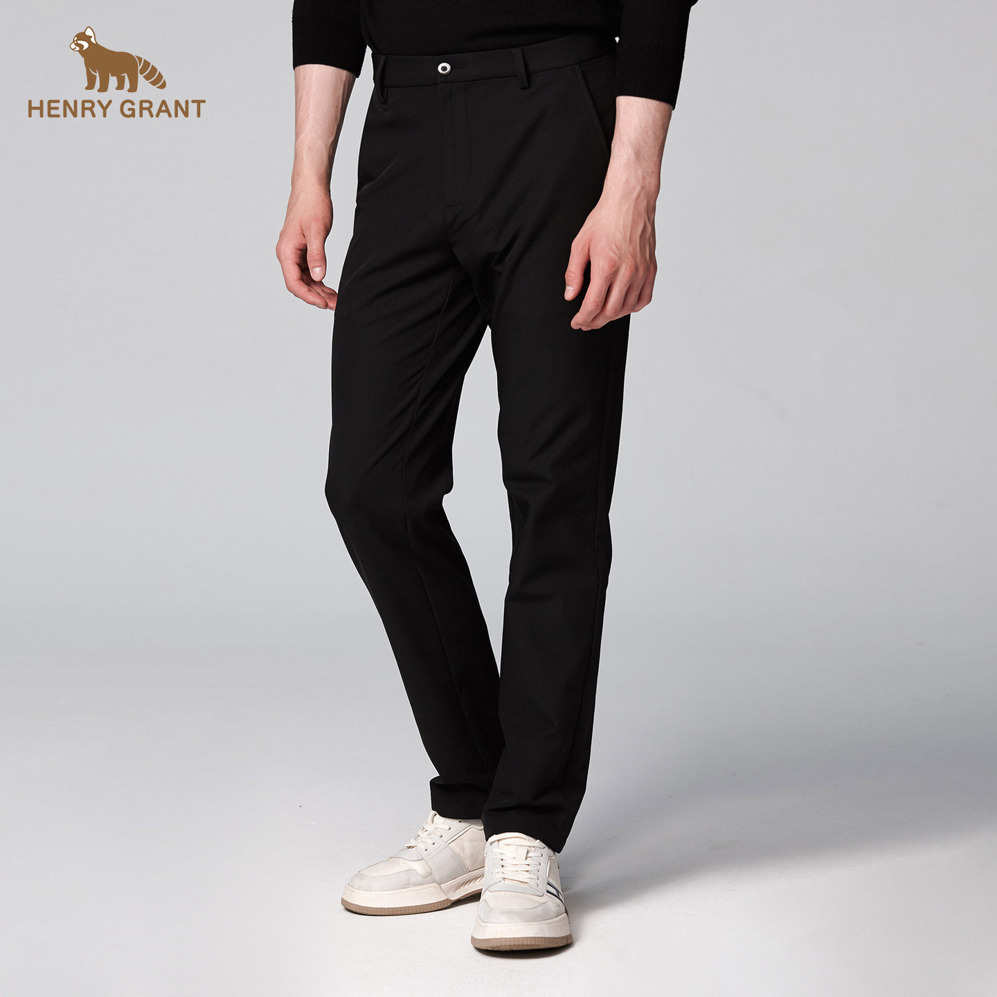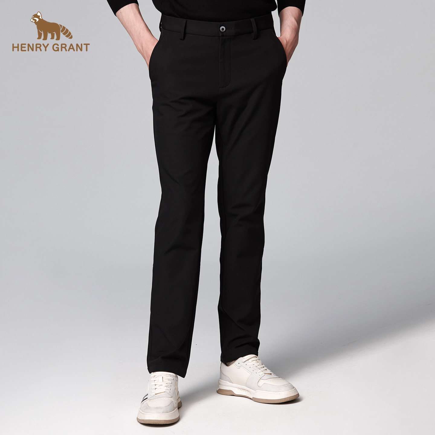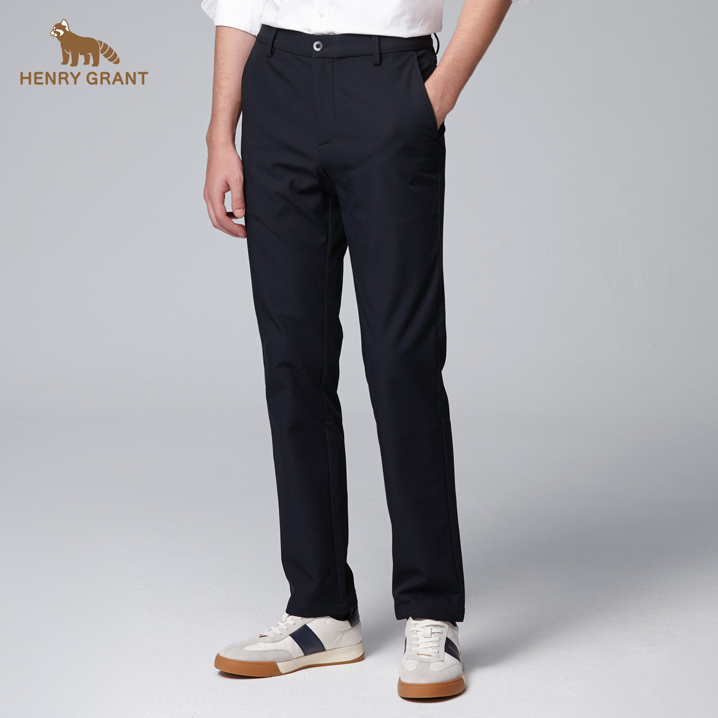 亨利格兰秋冬新品男商务休闲百搭通勤裤中高腰简约直筒厚款长裤子