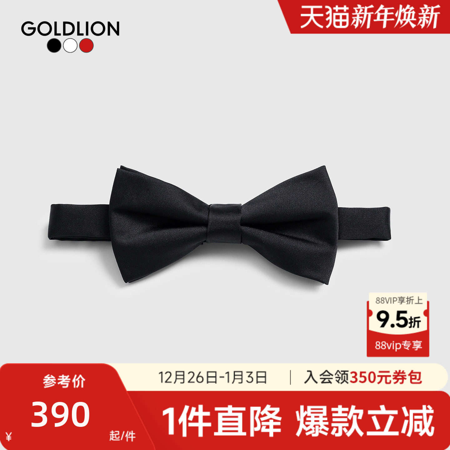 台球运动系列金利来男士精致纯色零干扰竞技宴会婚宴双层领结配饰
