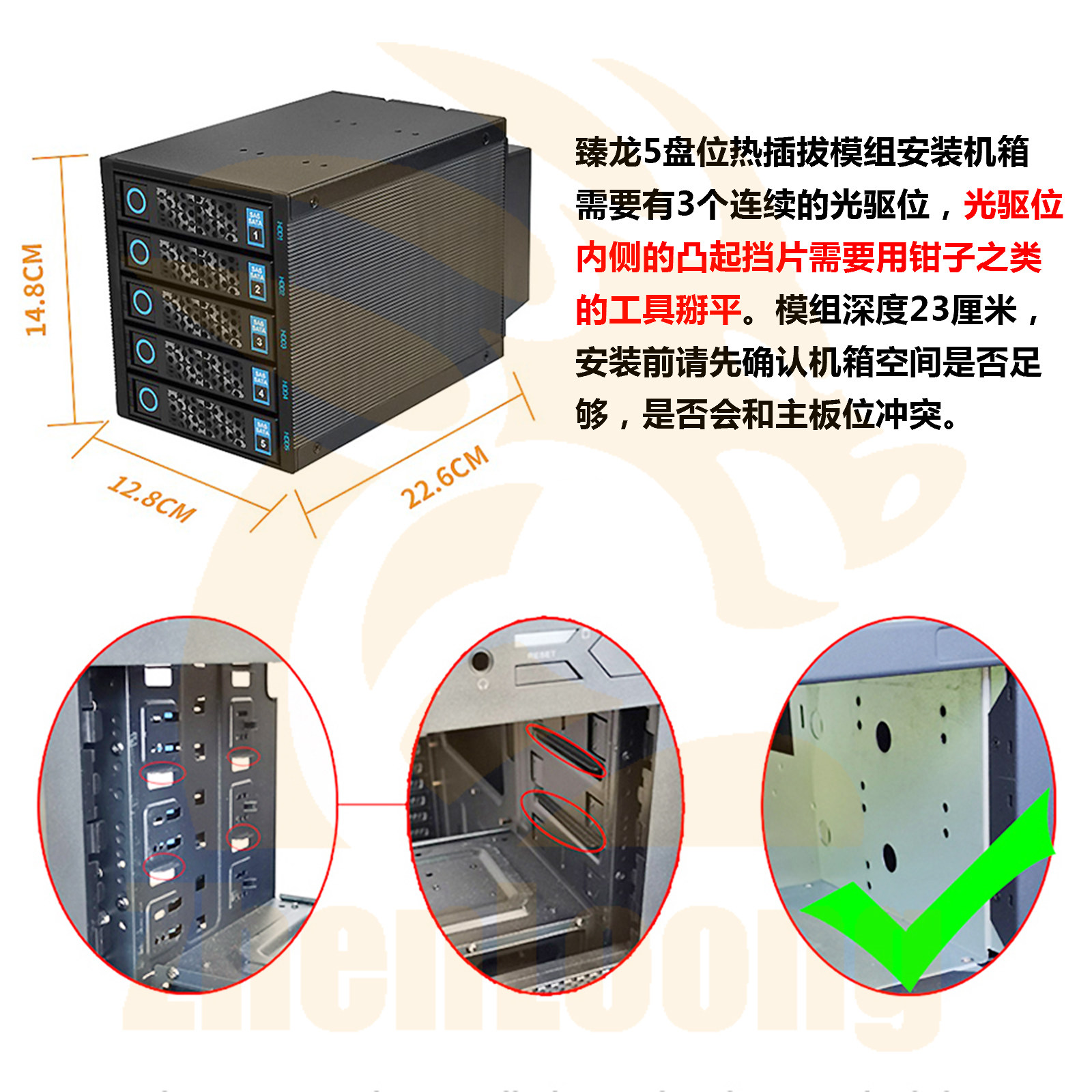道和臻龙硬盘笼子三光驱位热插拔硬盘模组带背板机箱扩展5盘位SAS