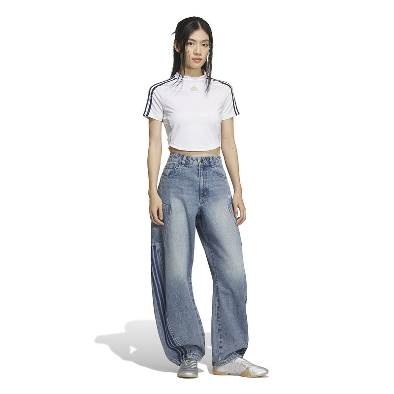 阿迪达斯三叶草单宁牛仔运动裤26春女三条纹复古阔腿长裤 KR2628