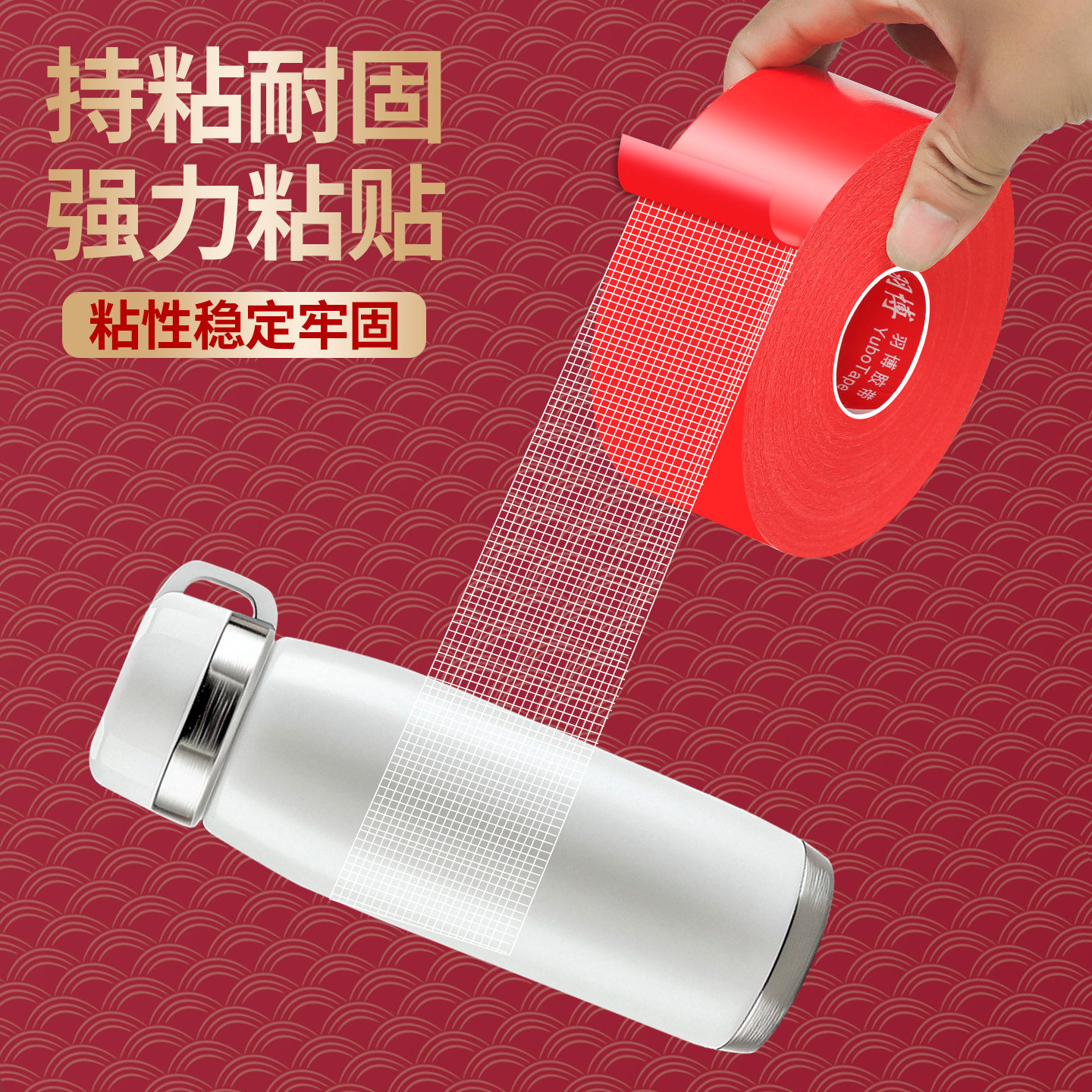 贴春联对联双面胶带撕下不留痕迹红色网格布基双面无痕胶布婚庆婚房装饰气球喜字福字年画高粘度强力固定墙面
