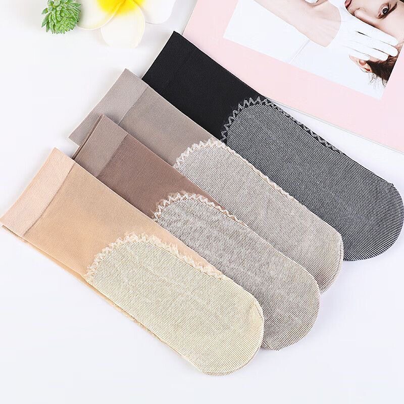 棉底丝袜女薄款短夏季水晶防勾丝防滑袜子隐形船袜短袜中筒袜肉色