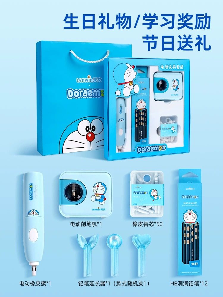天文电动文具A6302套装哆啦A梦礼盒A6303自动削笔器卷笔刀小学生