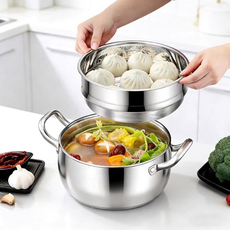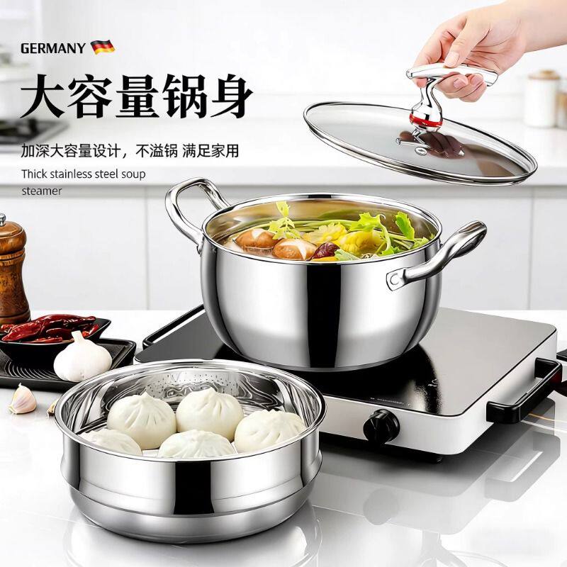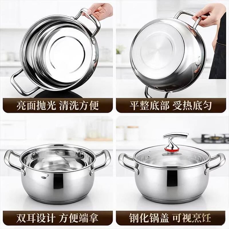 加厚不锈钢汤锅家用苹果锅蒸锅耐高温燃气电磁炉通用大容量抗菌
