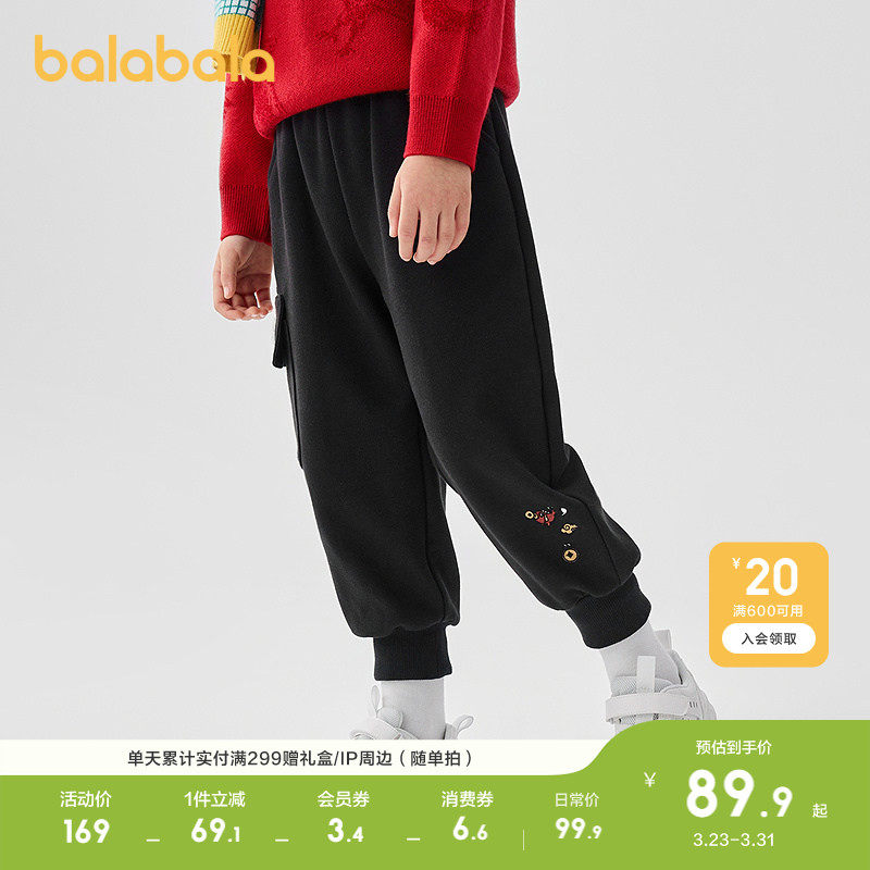 巴拉巴拉童装男童长裤2026春装休闲束脚裤绣花儿童工装裤子潮运动