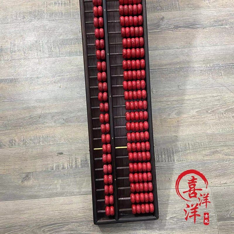 古董文玩檀木实木松石珠超长v算盘老式37档51档摆件民国账房摆件