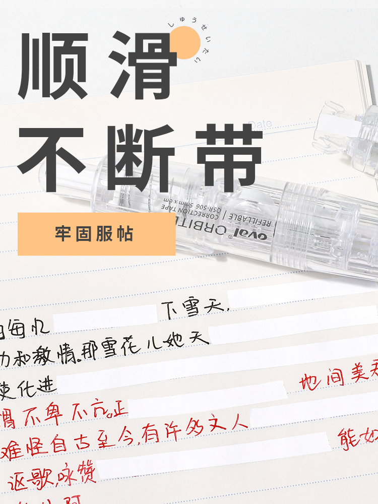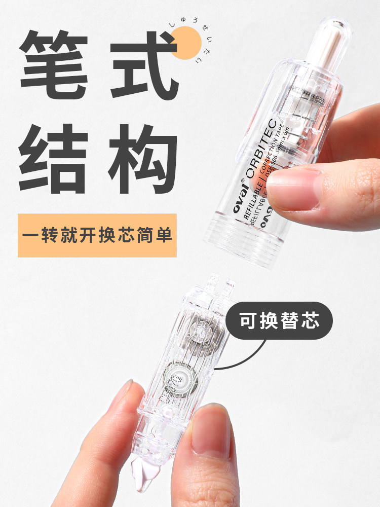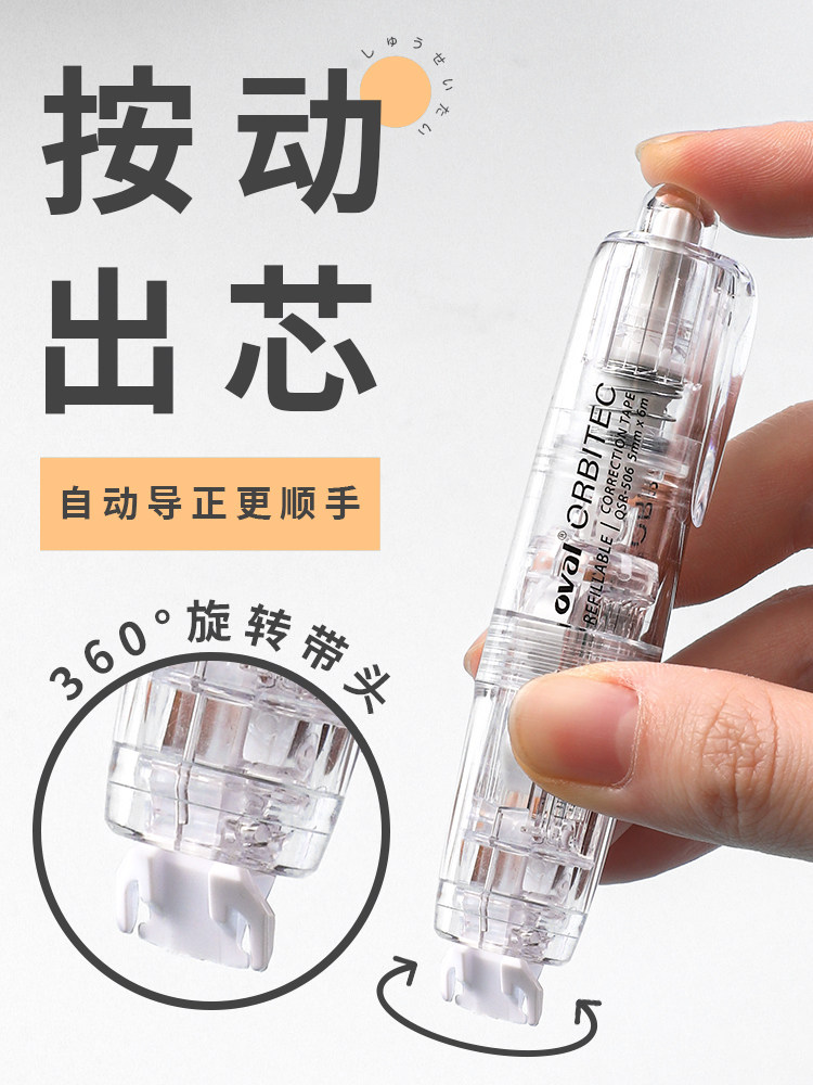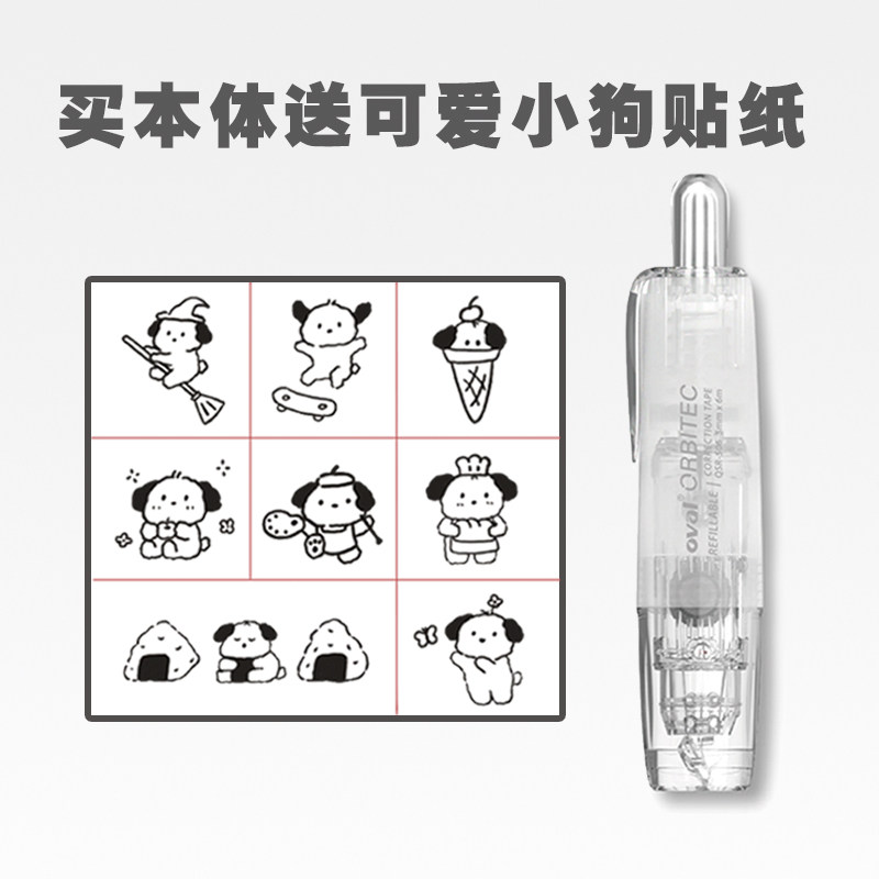 台湾oval欧文修正带透明雾感笔式按动型涂改带快乐小狗贴纸DIY可换替芯改正带大容量小学生用男初中生文具