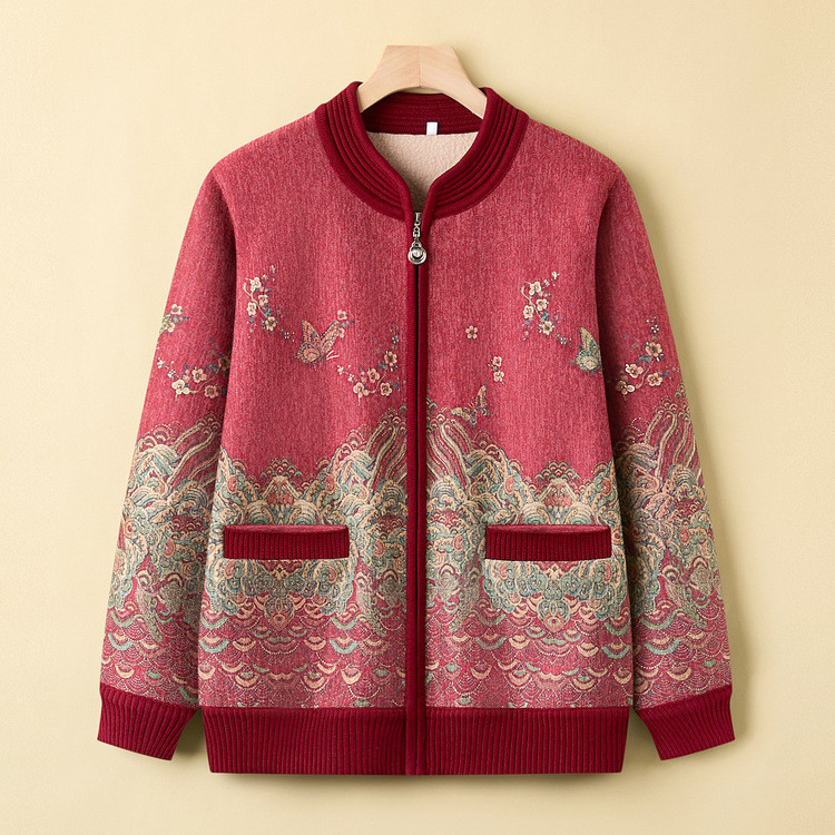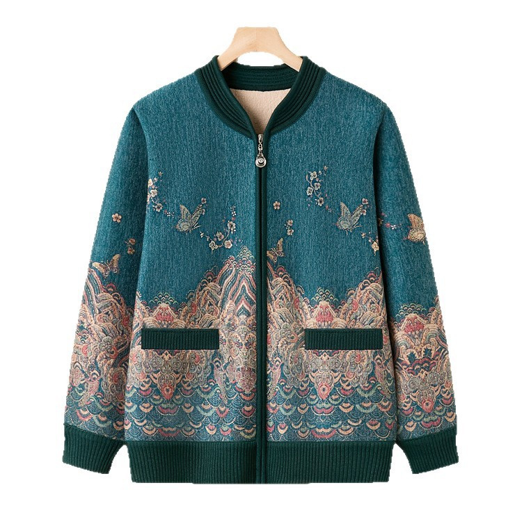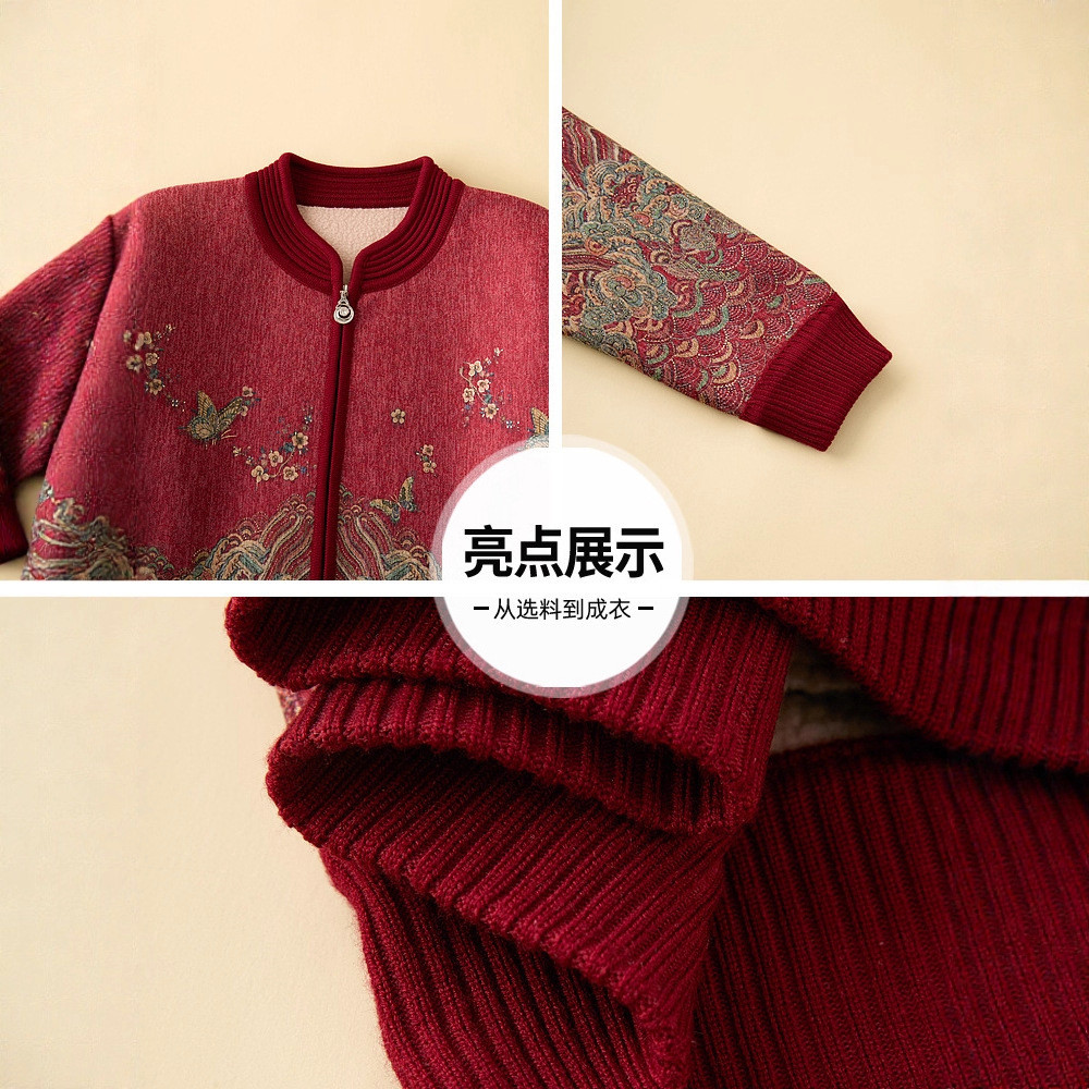 妈妈装开衫毛衣老年人秋冬款针织毛衣宽松外套奶奶装加绒加厚大码