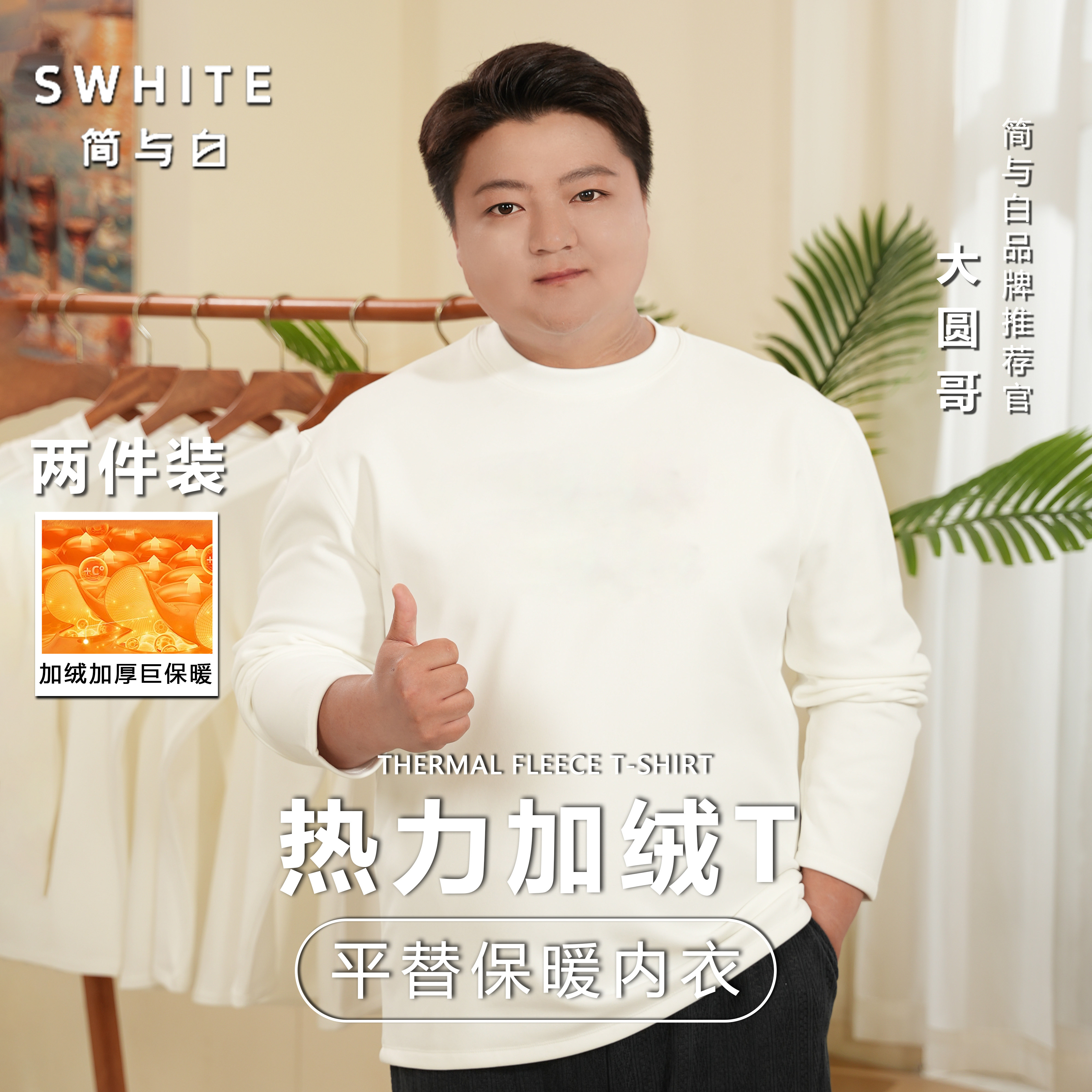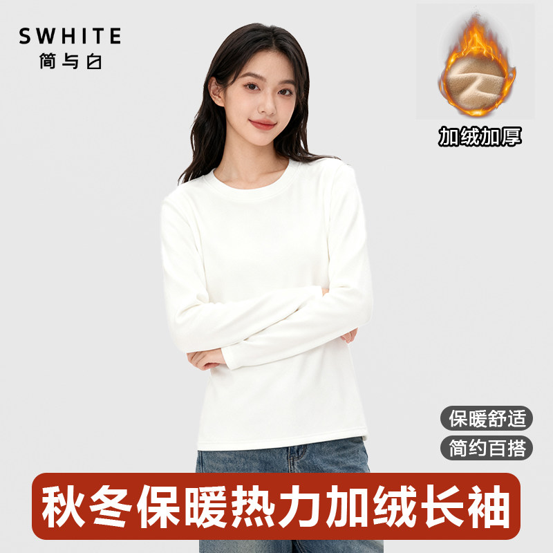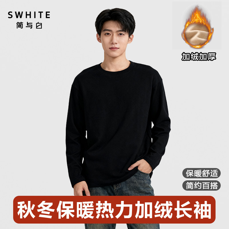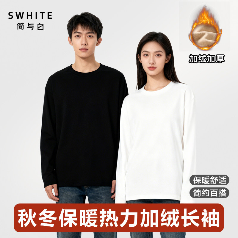 「简与白」热力加绒长袖T恤2件装秋冬内搭小白T亲肤透气保暖打底