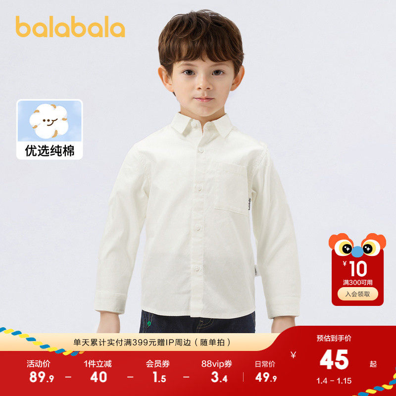 巴拉巴拉童装儿童长袖衬衫男童女童2025秋装时尚上衣百搭小童潮酷