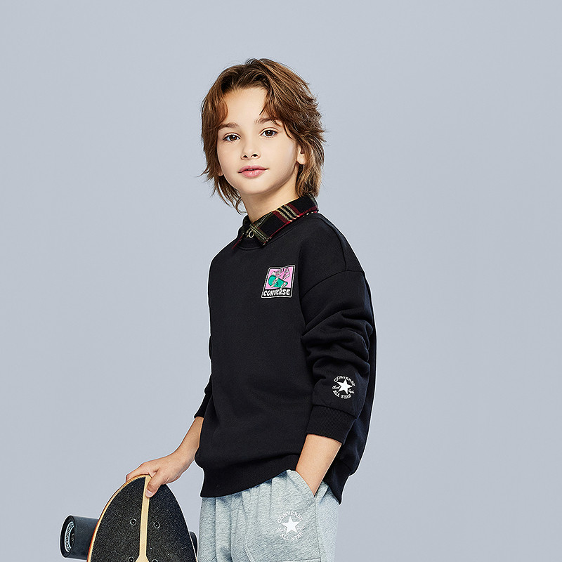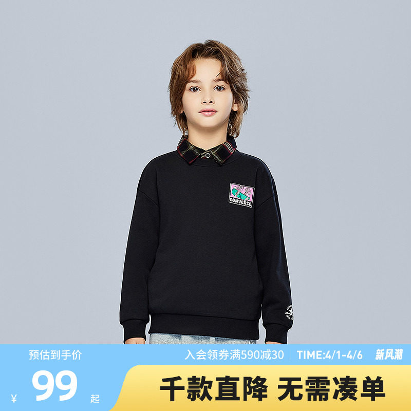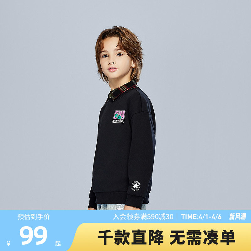 匡威童装男童卫衣青少年春季中大童印花圆领套头休闲服宽松套衫