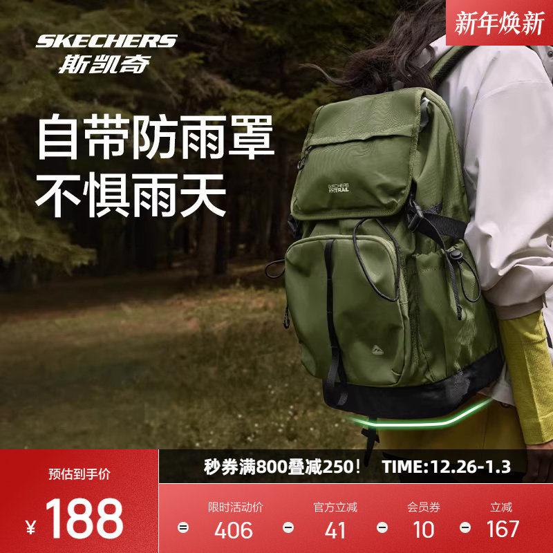 斯凯奇男女同款大容量运动旅行包双肩包背负书包户外登山包背包